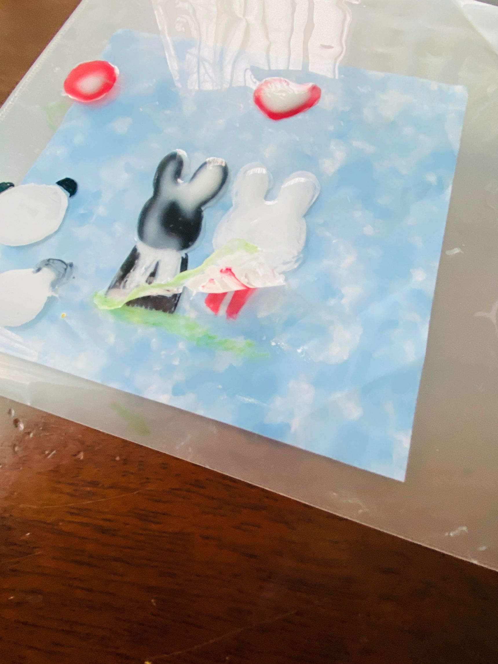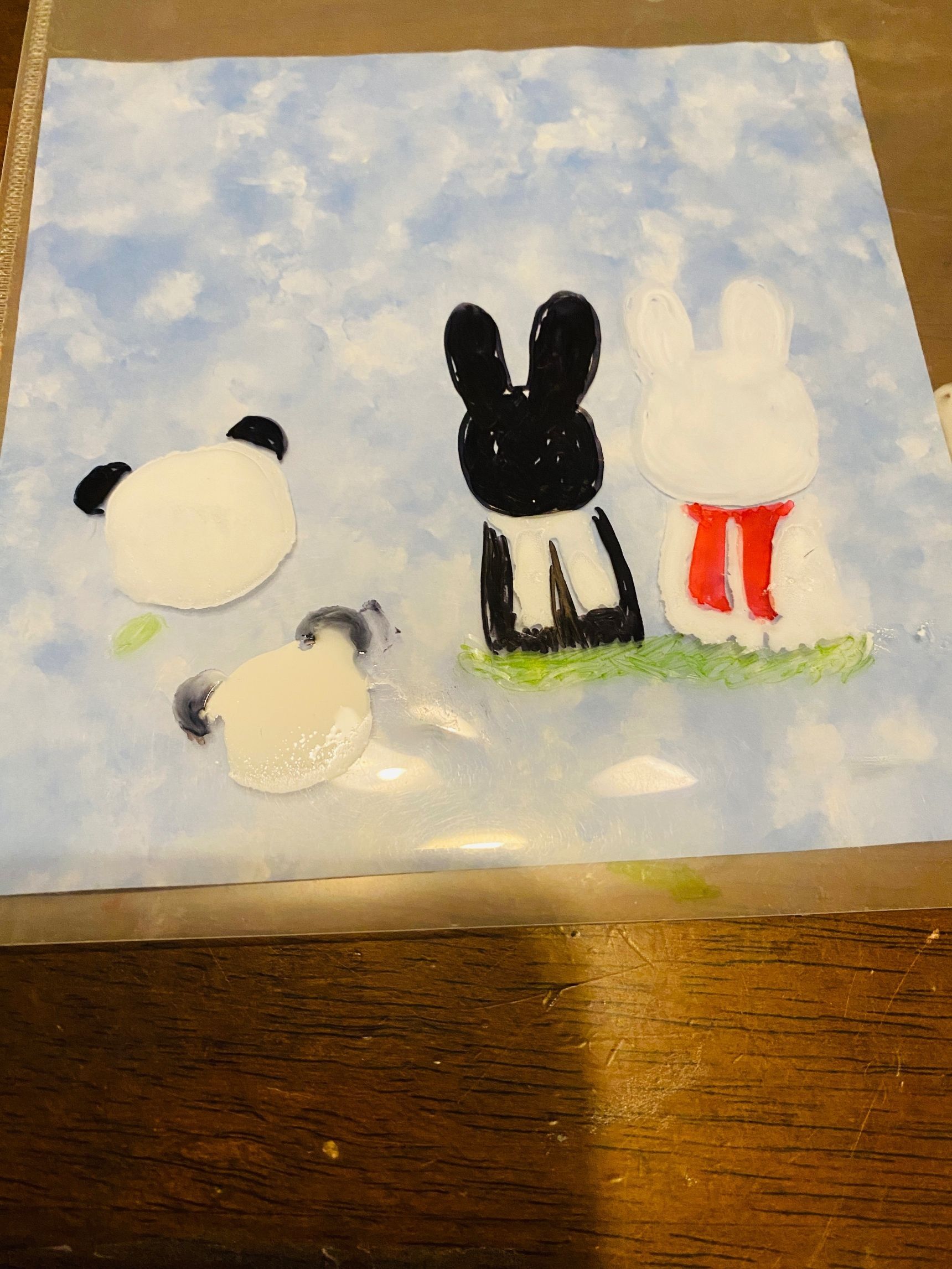 クリアファイルの上に、油性マジックで好きな絵を描きます。