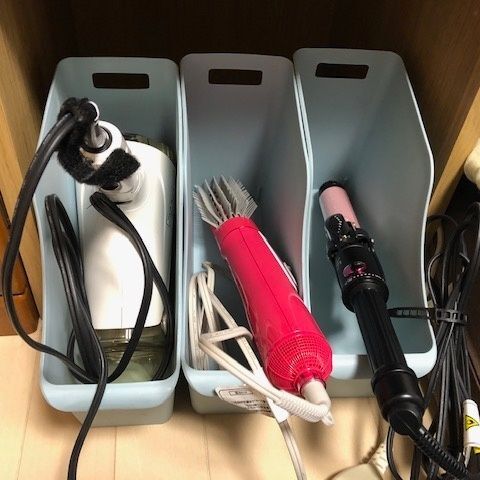 ごちゃつくドライヤーの収納。使うときにコードが絡まったり、見た目が汚くてストレスです。