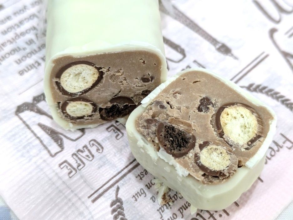 そこにプレーンビスケットやココアクッキーの食感が加わってたまらなく美味しいです。