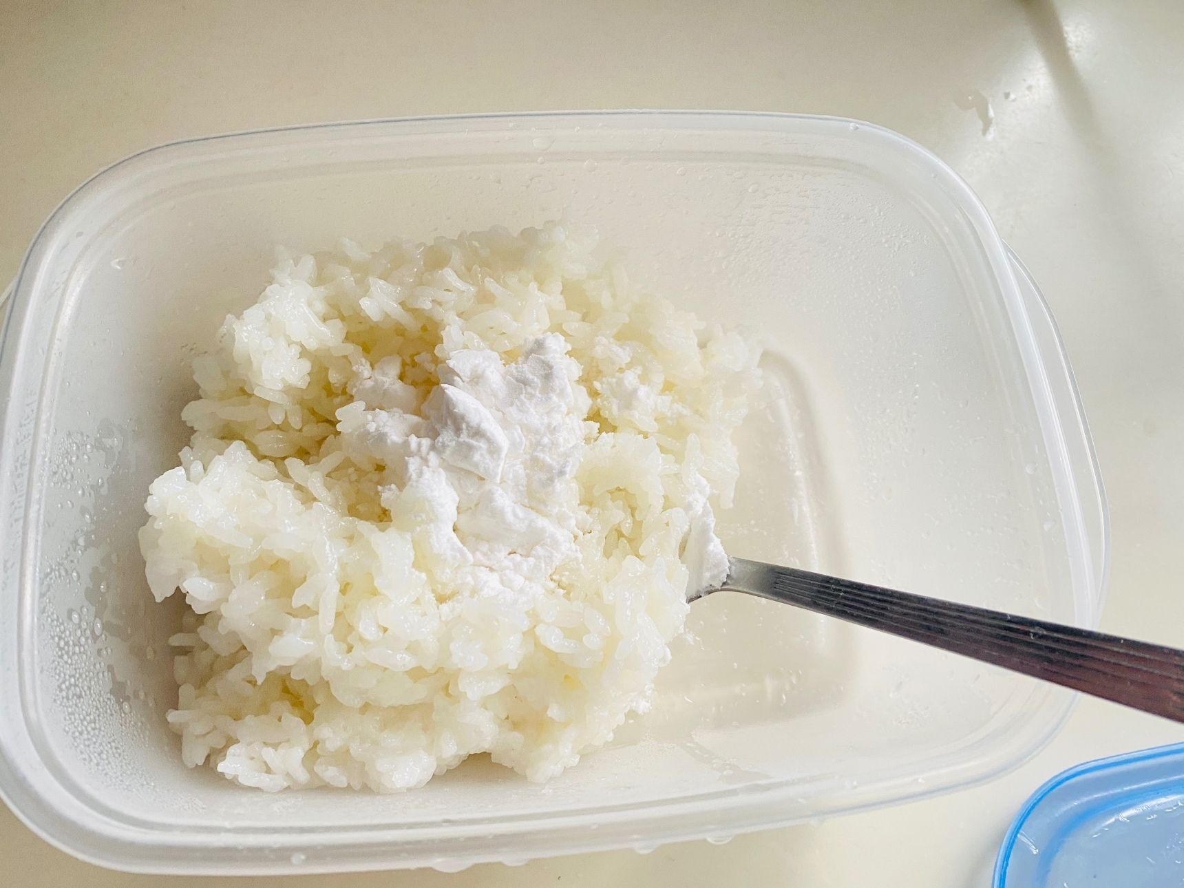 もち米をたくさん使わず、少量で作りたい時に、温かいご飯に片栗粉を混ぜるだけでそれっぽく作れます。