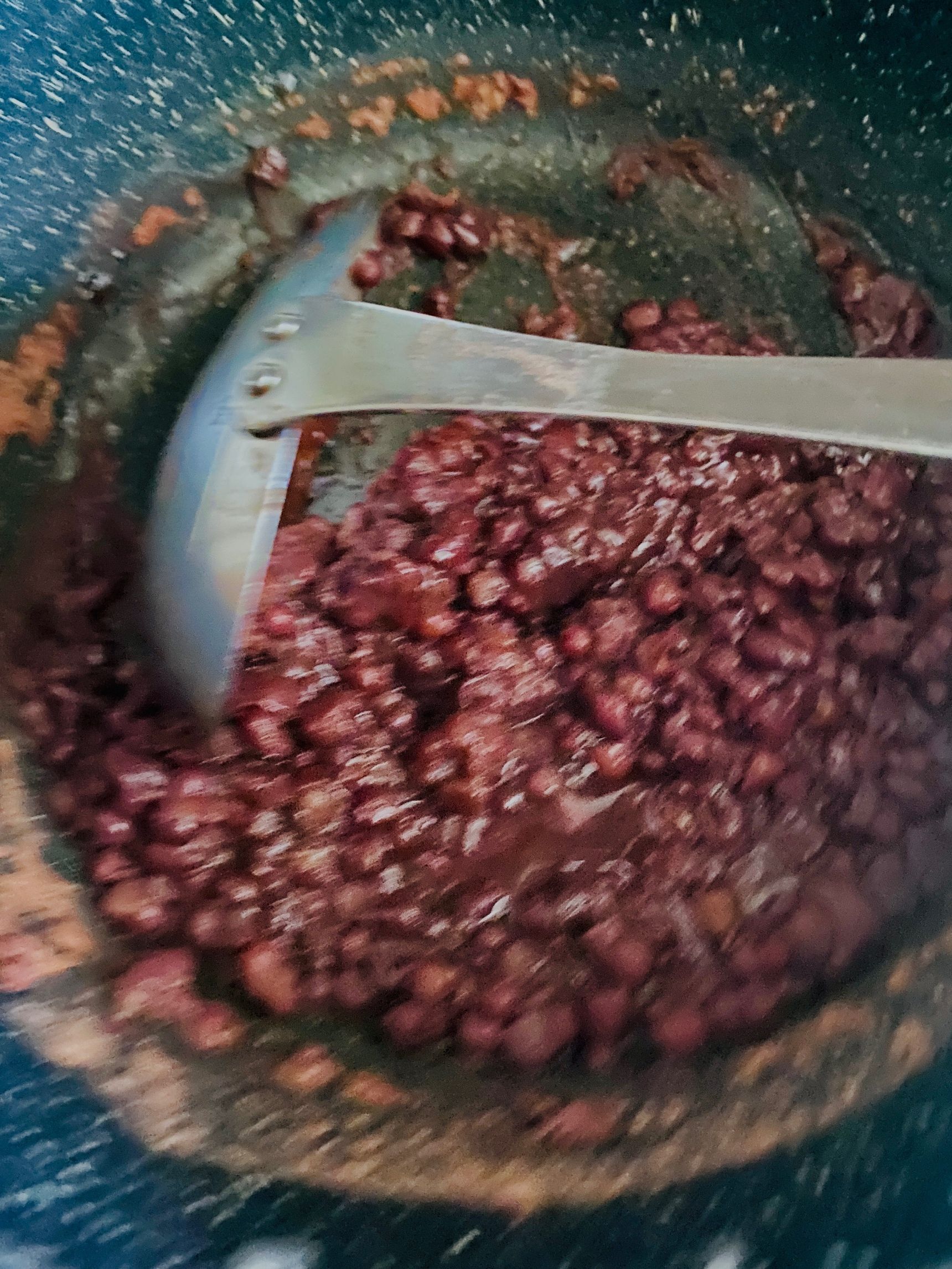 粒あんを冷凍庫から出して自然解凍したら、鍋に入れて火にかけ、水分を飛ばします。