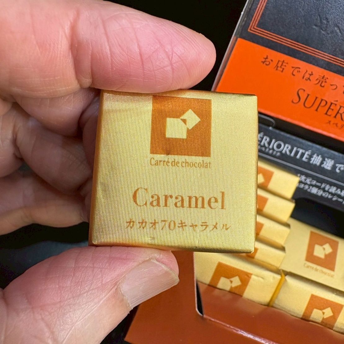 チョコレート自身がダークで、キャラメルが香料ではなく本物なので、上質なデザートとして珈琲に添えてもすごく合います。