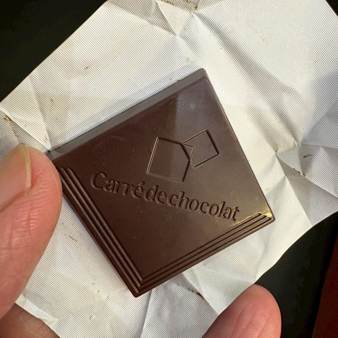 かなり濃いチョコレートに、カリカリしたキャラメルのチップが入っています。