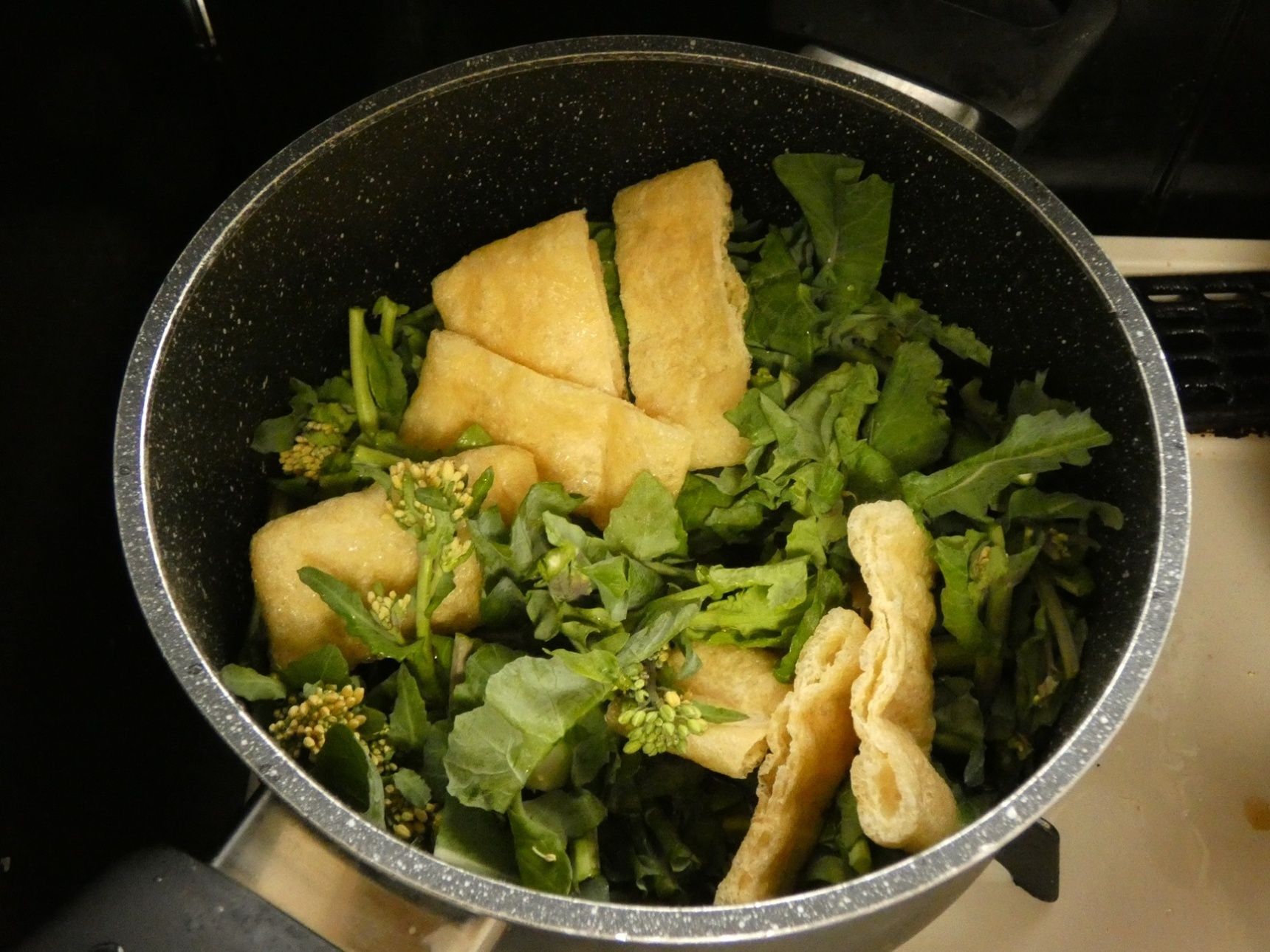 5分くらい加熱し、菜の花に火が通ったら完成。
