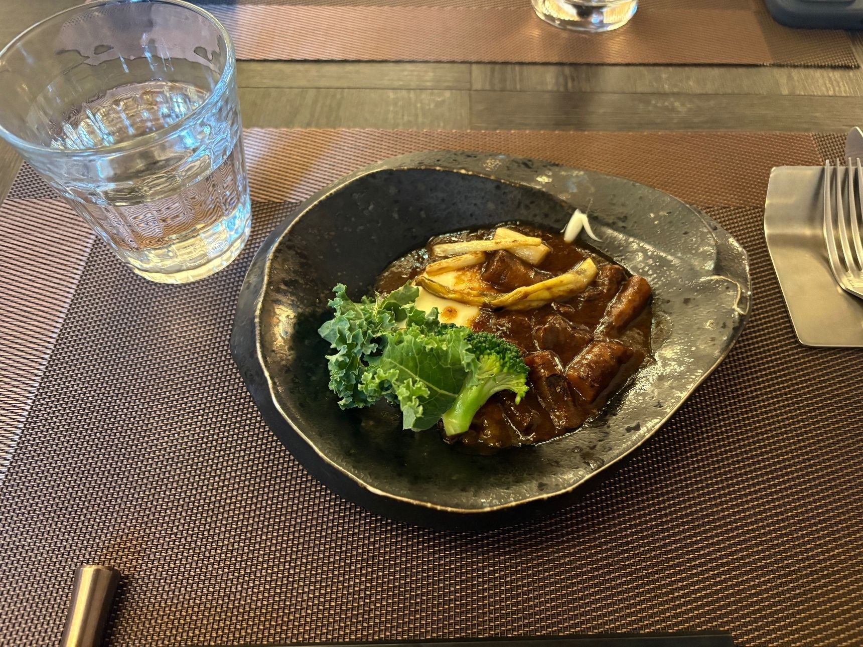 メインは『東京うどの根っこと牛すじ肉の赤ワイン煮』。