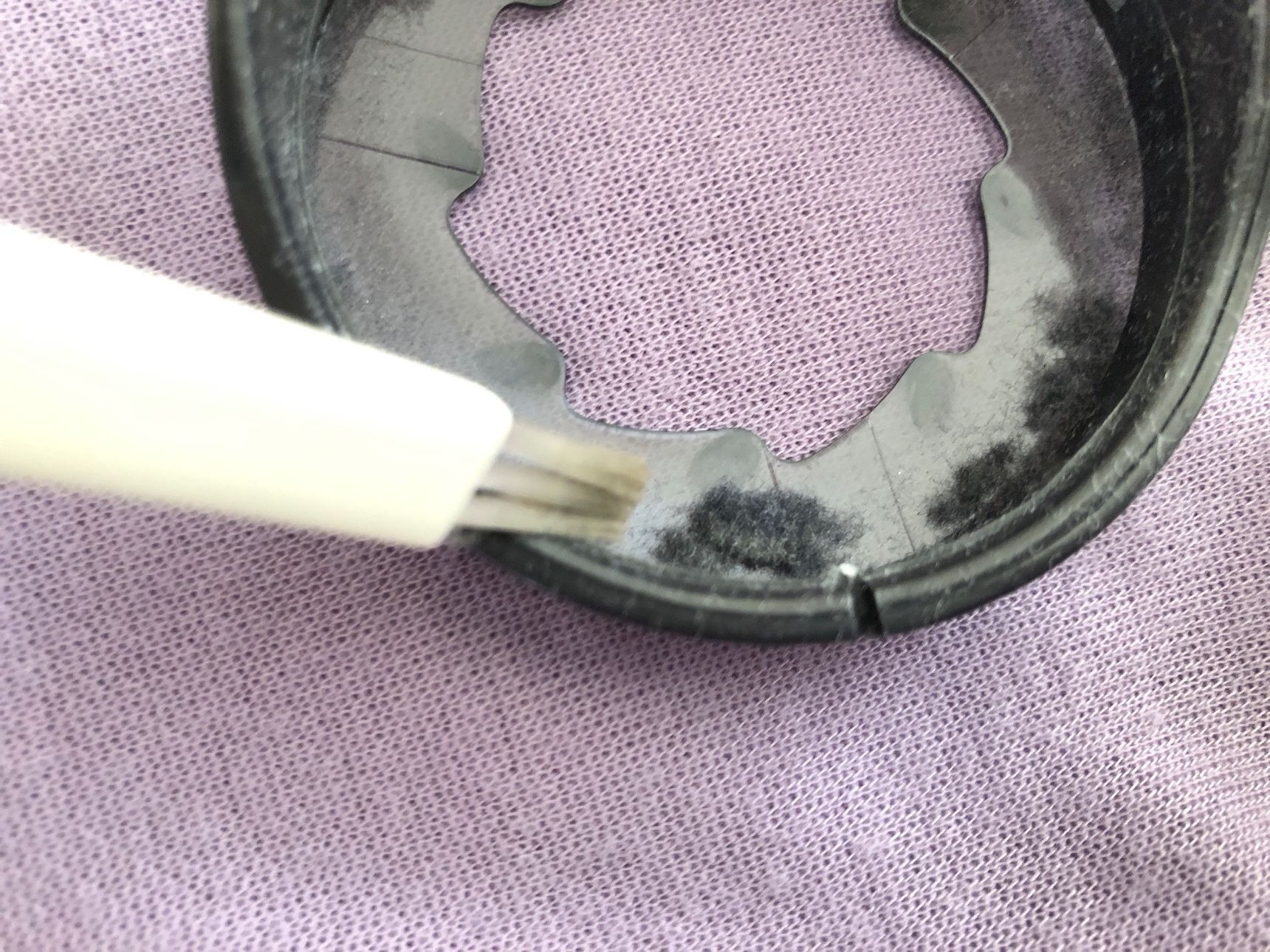 付属されていたはずのお掃除ブラシが迷子中なので代わりにミシンのブラシを使います。