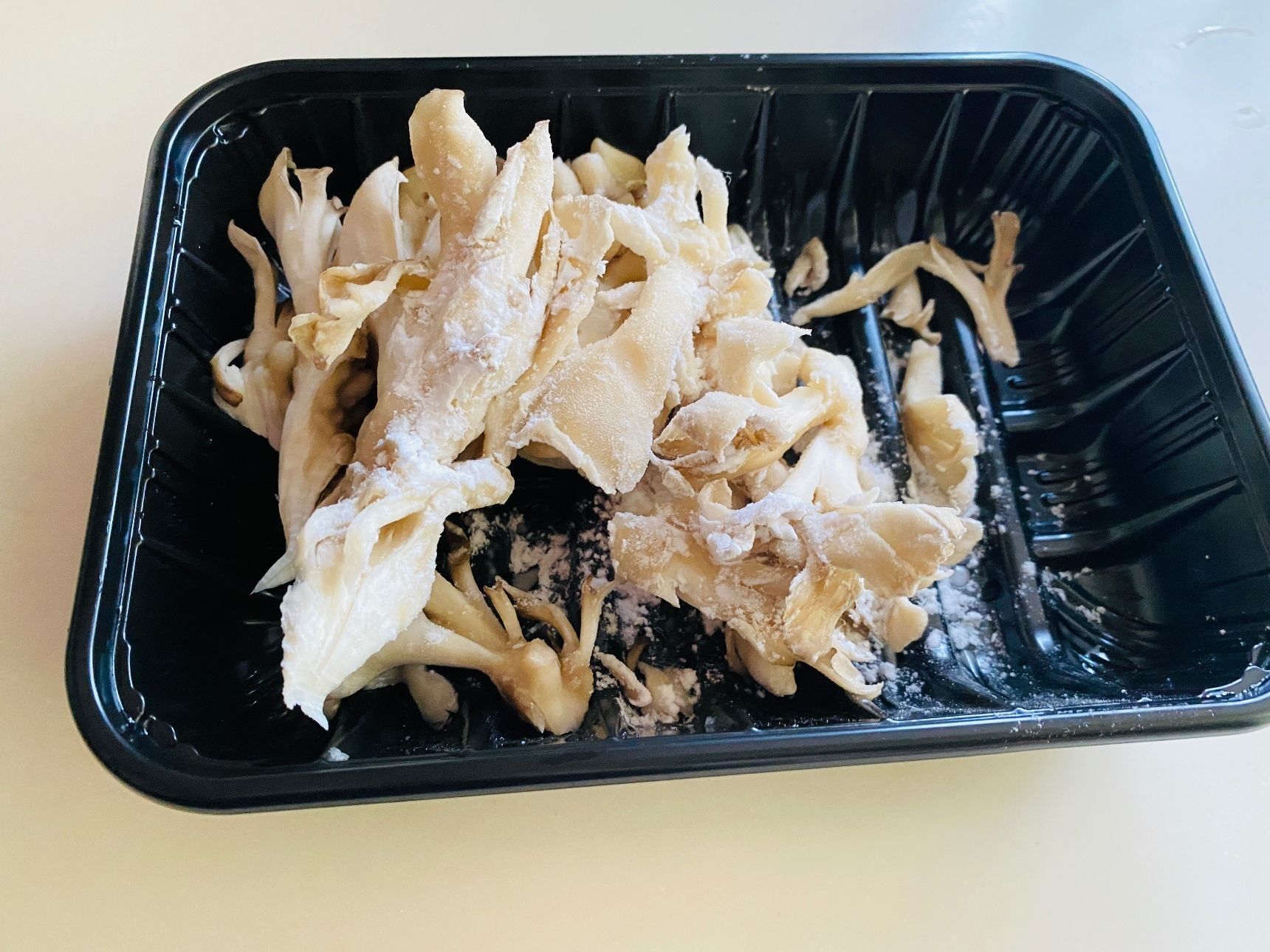 舞茸は、手で割いて片栗粉をまぶしておきます。