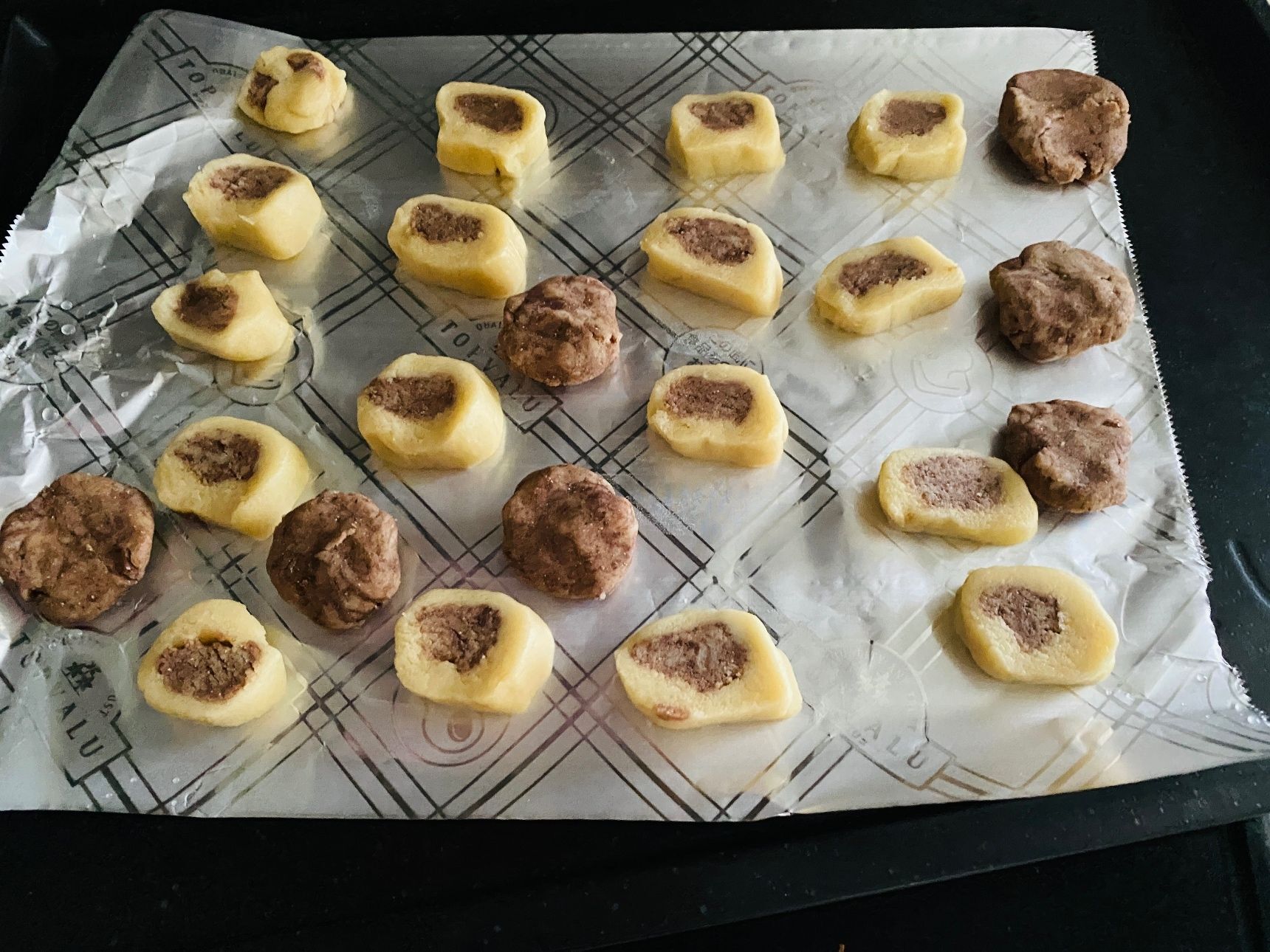半分に分け、片方にココアを入れよく混ぜます。