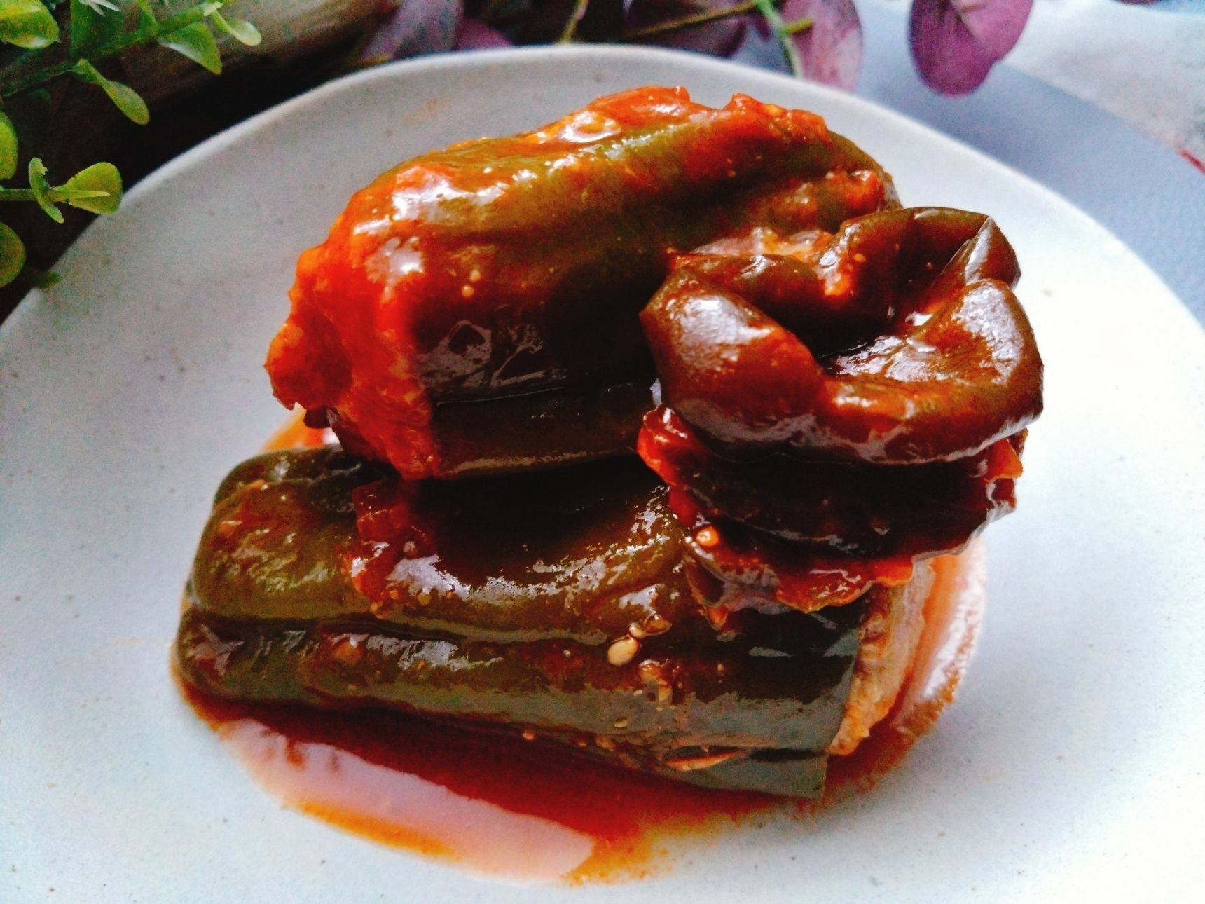 2.フライパンにピーマンを並べ、Bを加えて中火にかけ蓋をして3分加熱する。