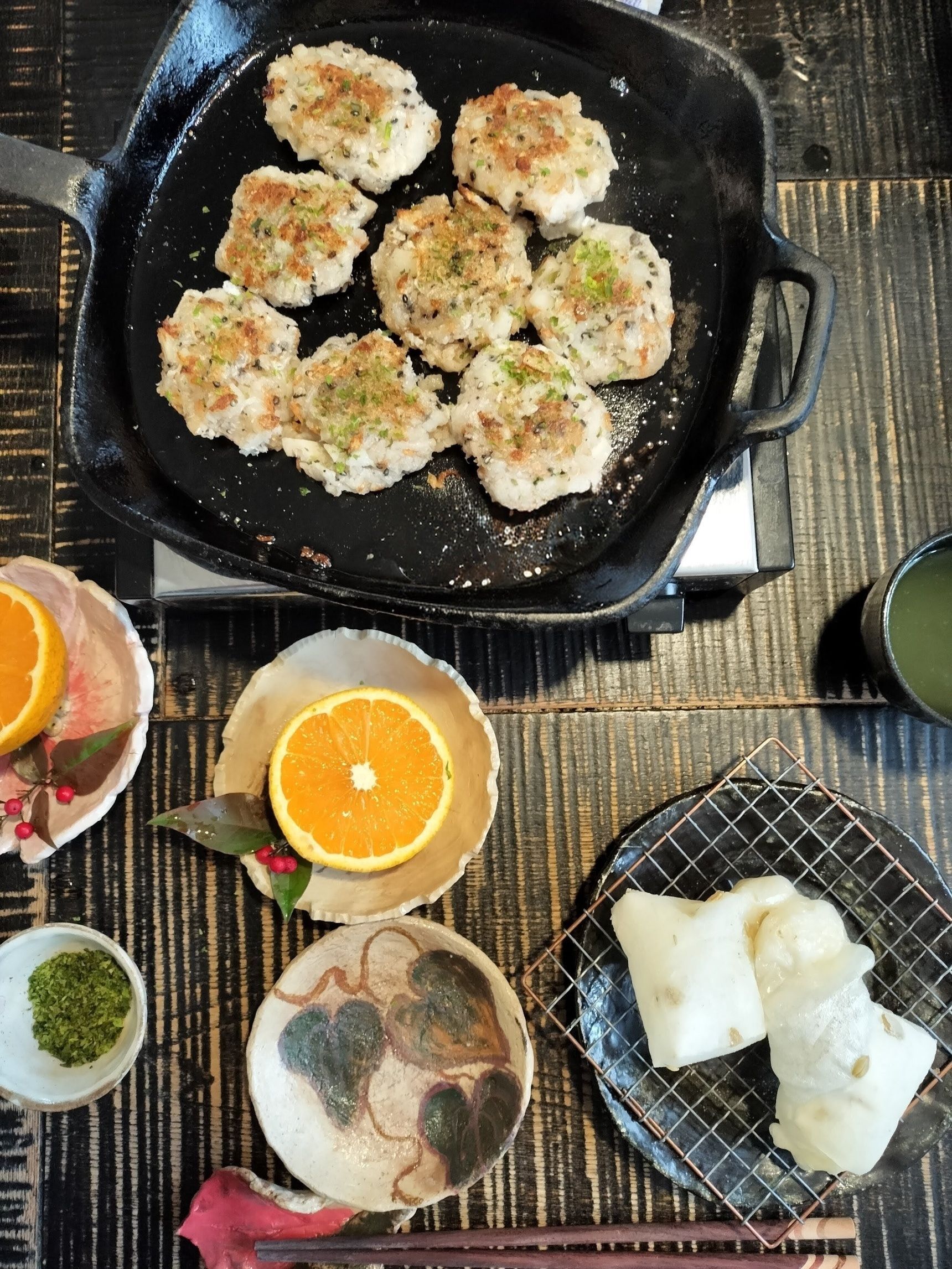 ※卓上ヒーター(弱火)で焼きながら食べると、最後まで両面のカリッとした食感を楽しめます!
