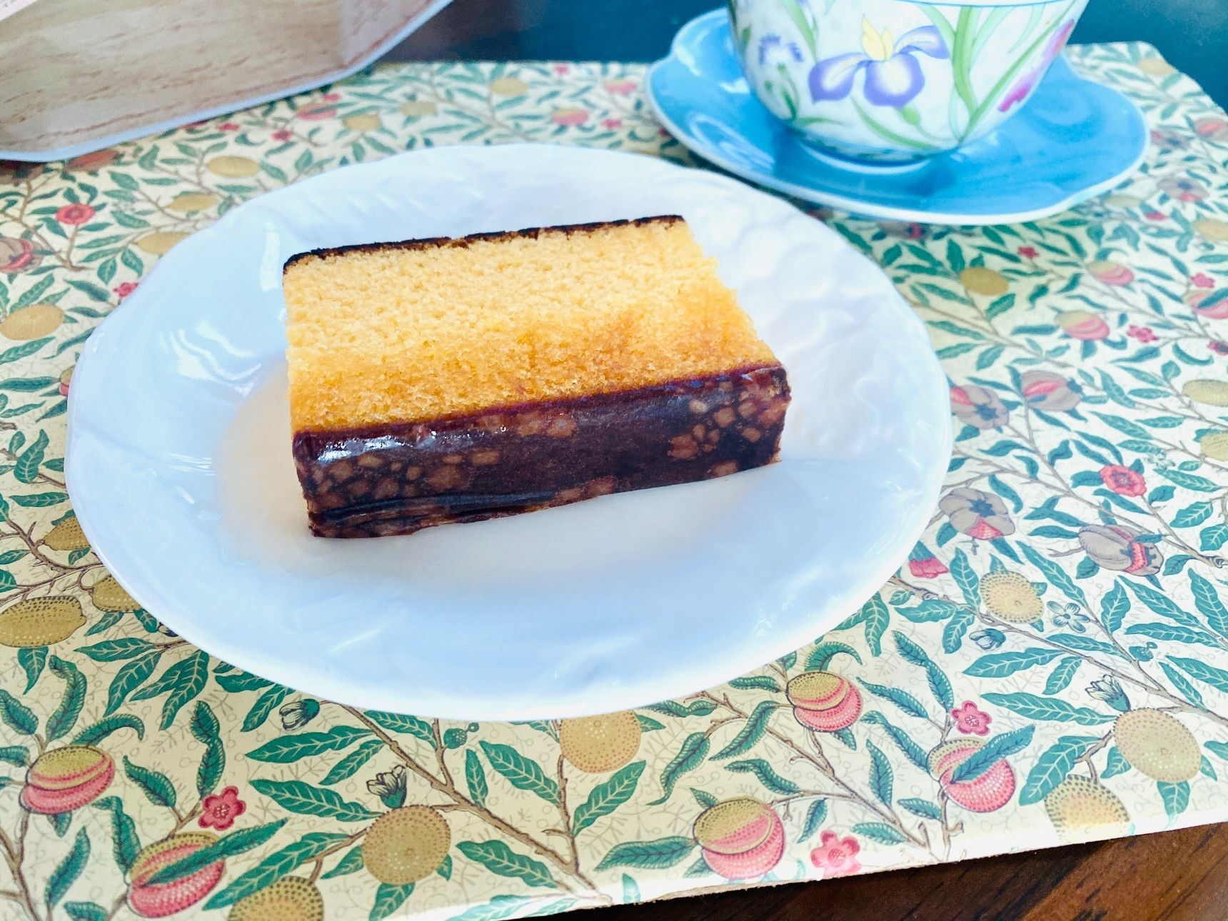 肝心のカステラは、口溶けの良い、なめらかなカステラです。写真でも下にザラメがあるのがわかると思いますが、蜜がたっぷりで美味しいですよ。