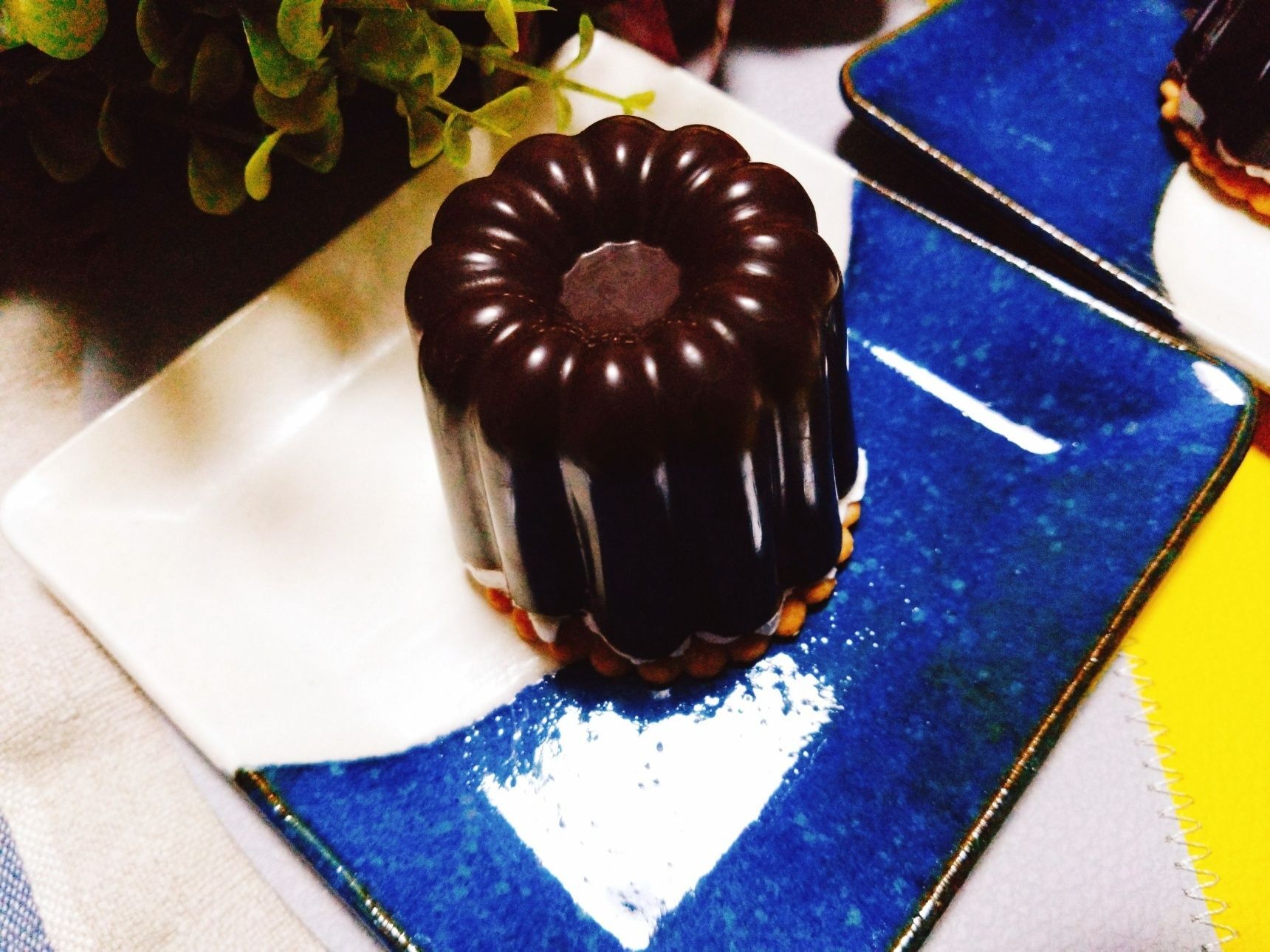 1.耐熱ボウルにチョコを割り入れ500Wのレンジで1分加熱。よく混ぜてツヤが出たらカヌレ型に入れて全体に塗り広げたら冷蔵庫で30分冷蔵庫で冷やす