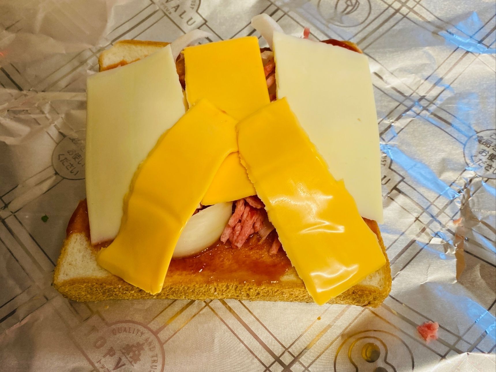 ピザトーストの具材でベーコンなどがない時、火の通りの早い合挽肉を使うのも美味しいですよ。