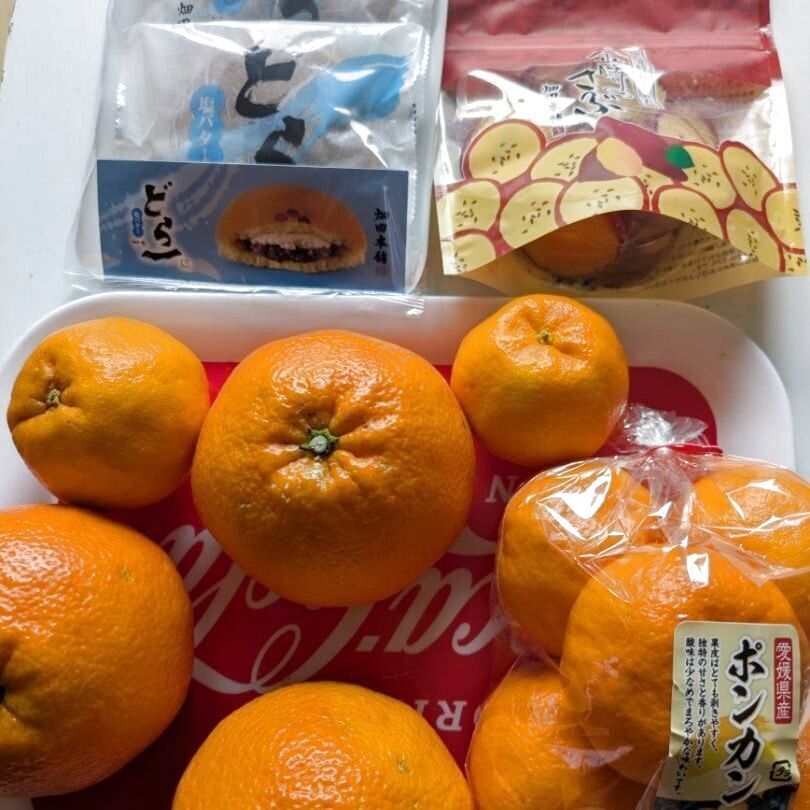 三男の体調不良のタイミングで、愛媛の義母から柑橘とお菓子が届きました。