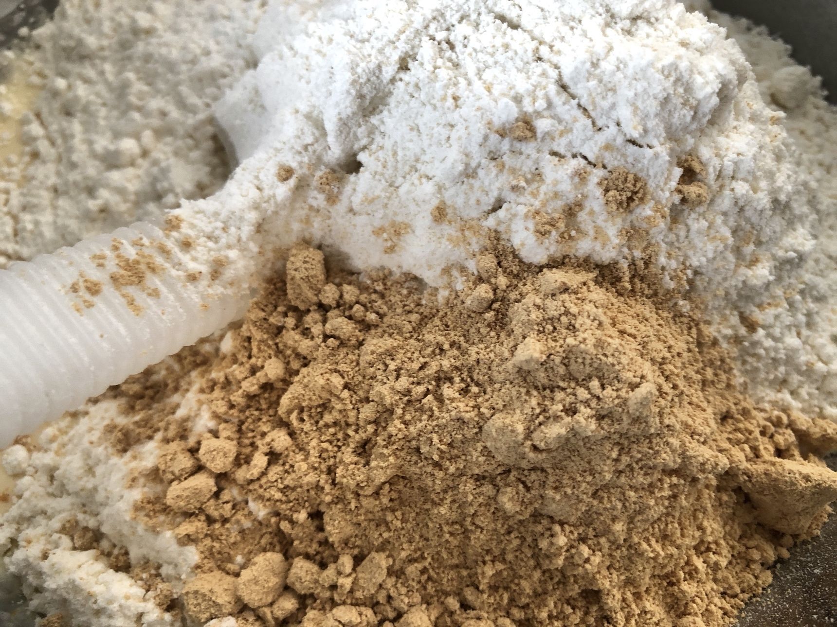 ホットケーキミックスときな粉を入れ更に混ぜます。