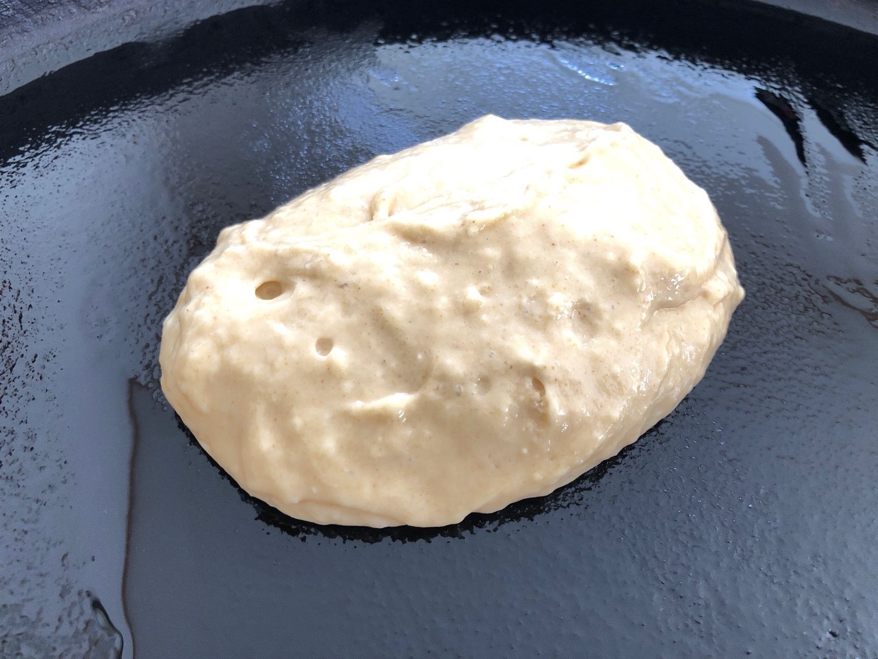 160℃に温めたホットプレートに油を引き、生地を流し入れます。