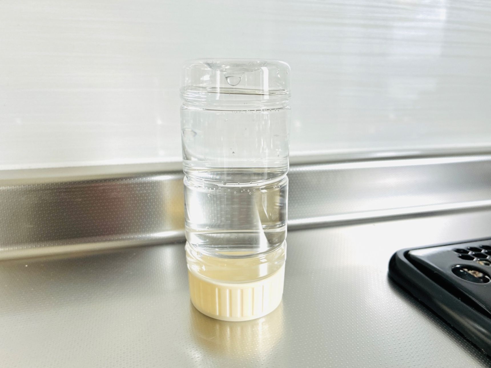 「まだフタからニオイがする!」と息子からの指摘があり、水を替えて上下をひっくり返し、さらに丸1日放置。