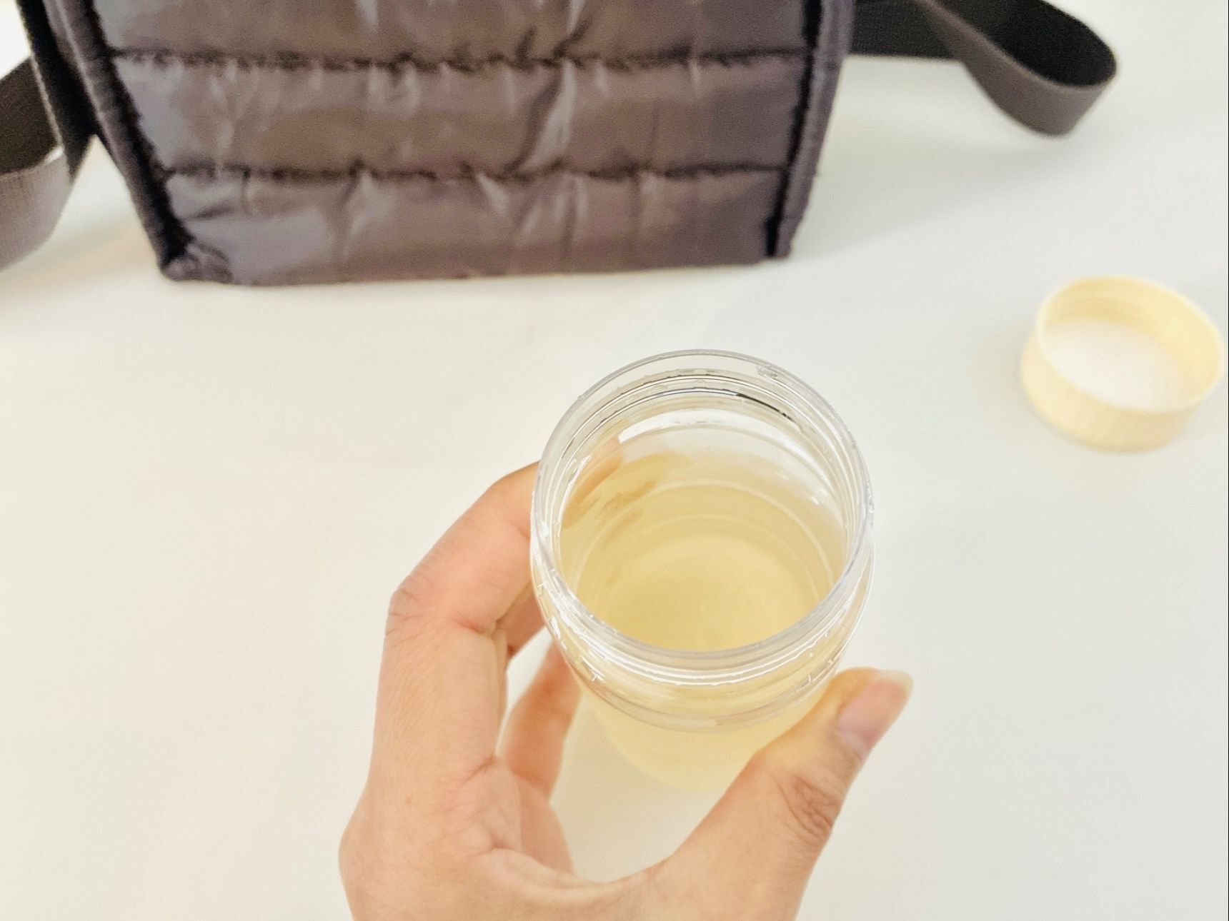 とりあえず、洗ってお茶を入れてミニ水筒のように使ってみました。