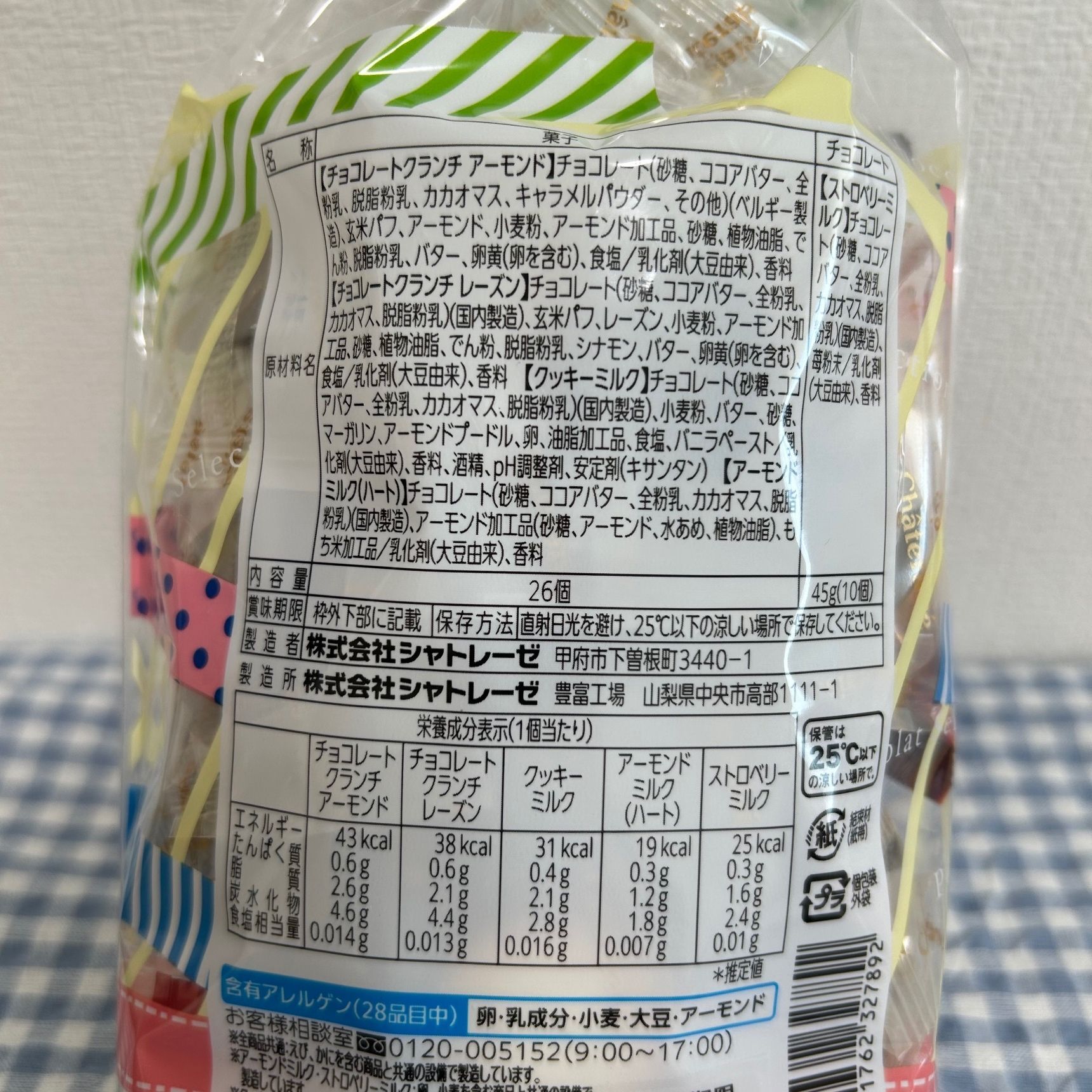 チョコレートの中にパフやアーモンドなどが入っているものが多く、食感も楽しく味わえます。