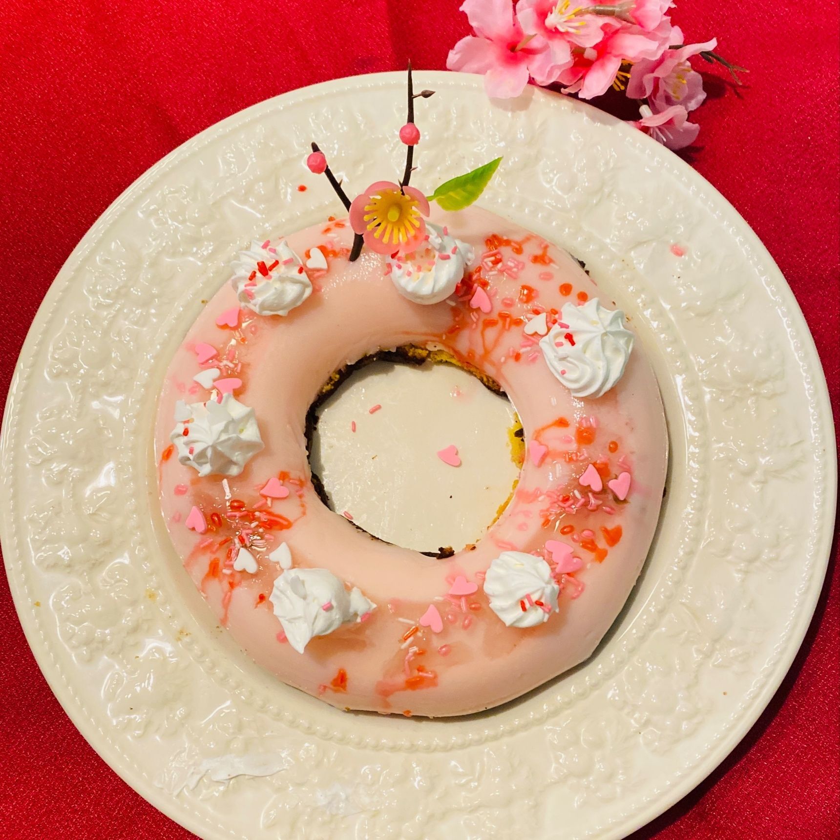 ホイップクリームや、デコレーションシュガー、桜ピックを彩りよく飾ります。
