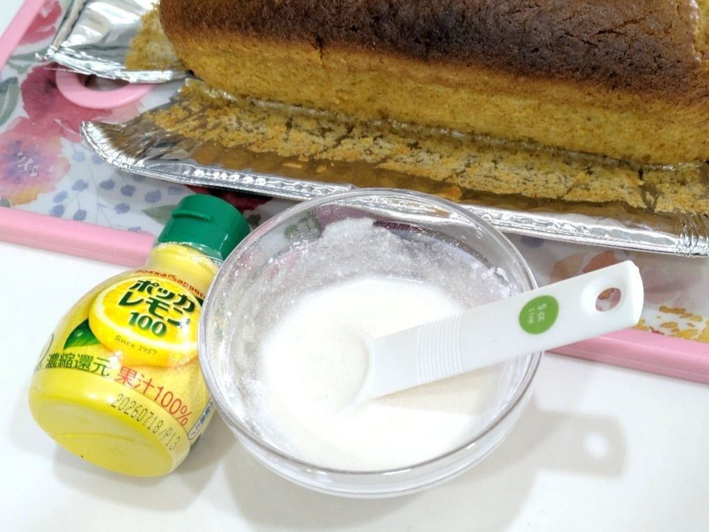 粉糖40gとポッカレモン100を小さじ2を混ぜて溶かし、アイシングを作ります。