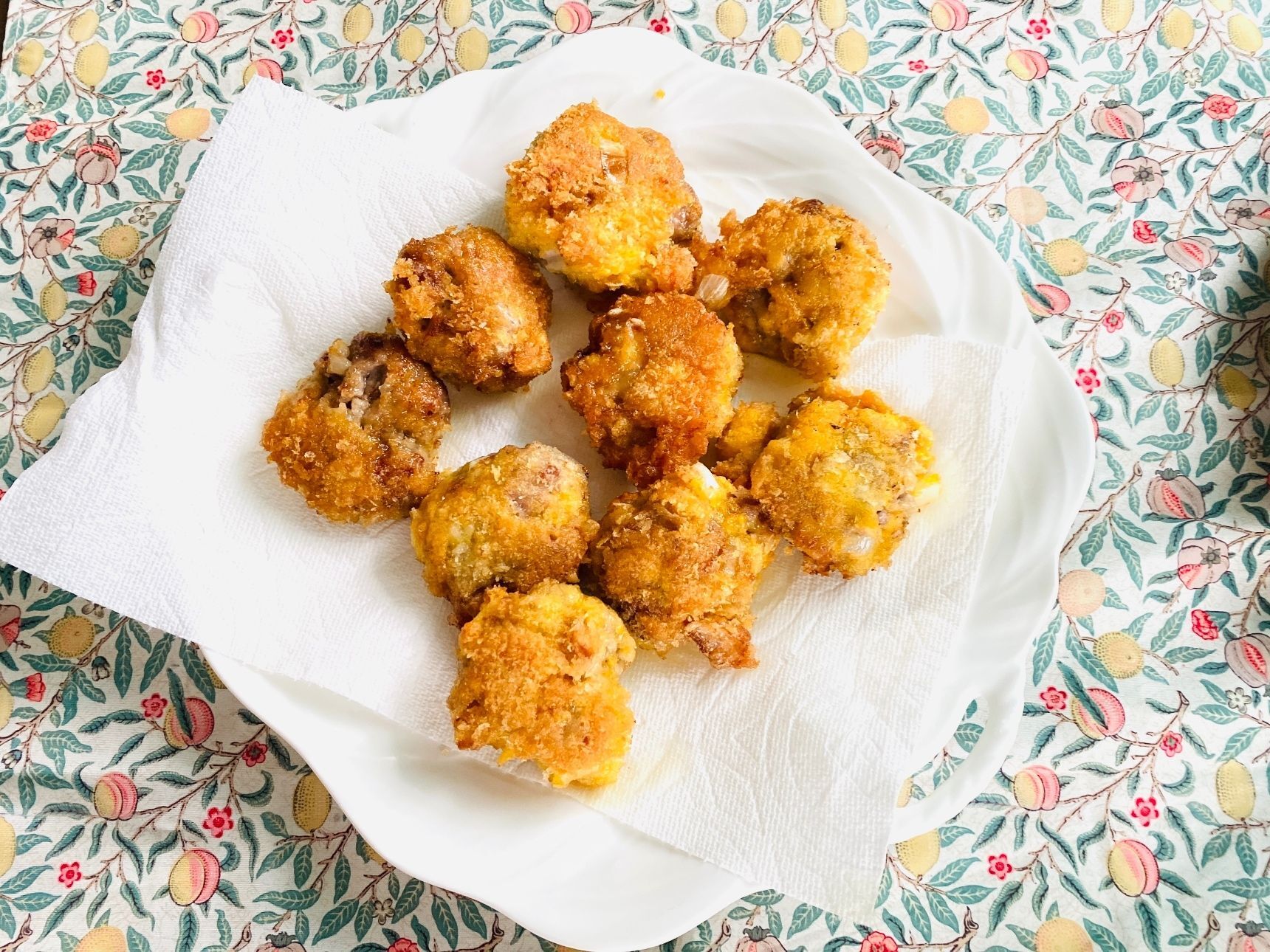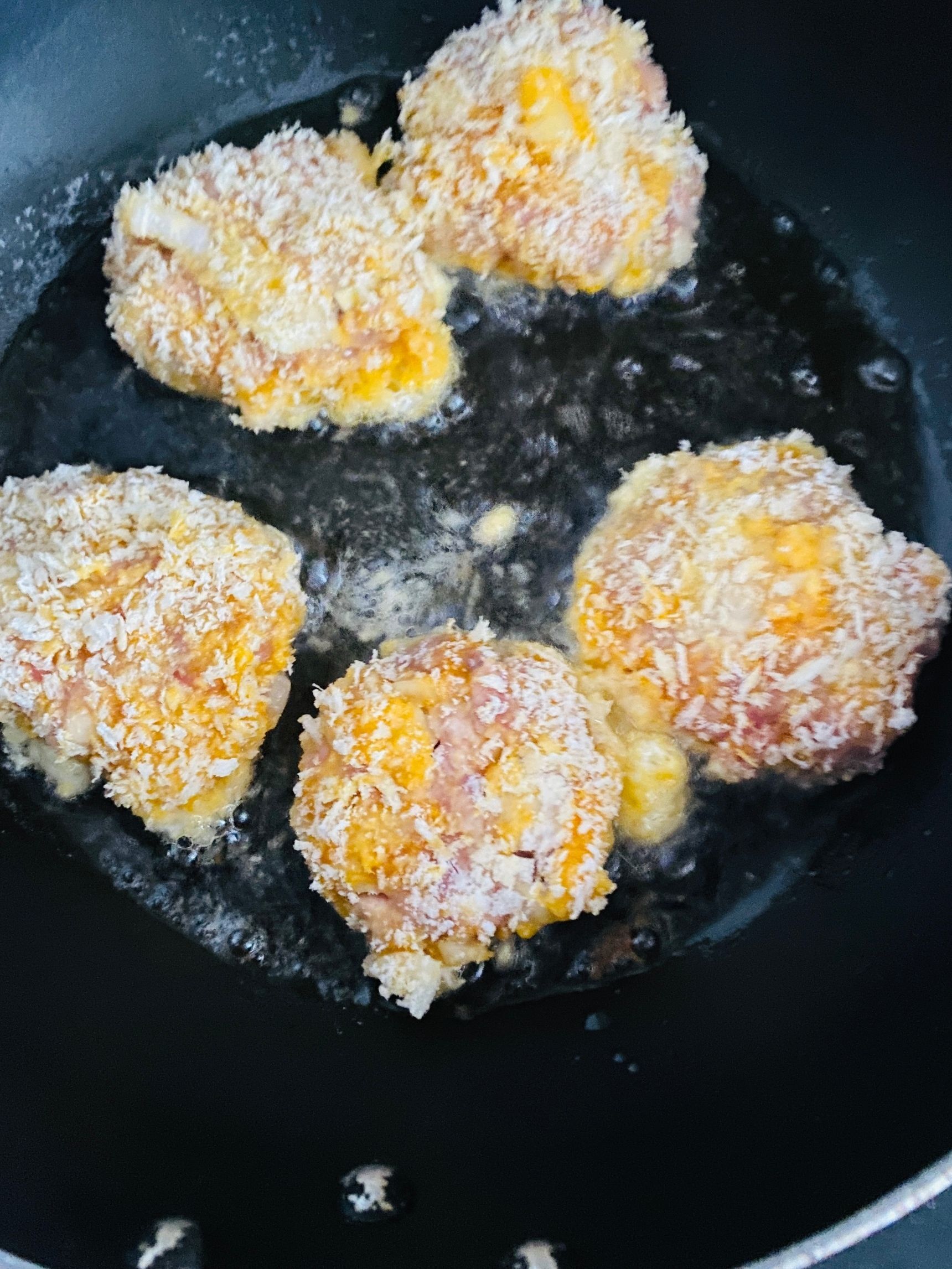 片栗粉、溶き卵、パン粉の順番に衣をつけます。