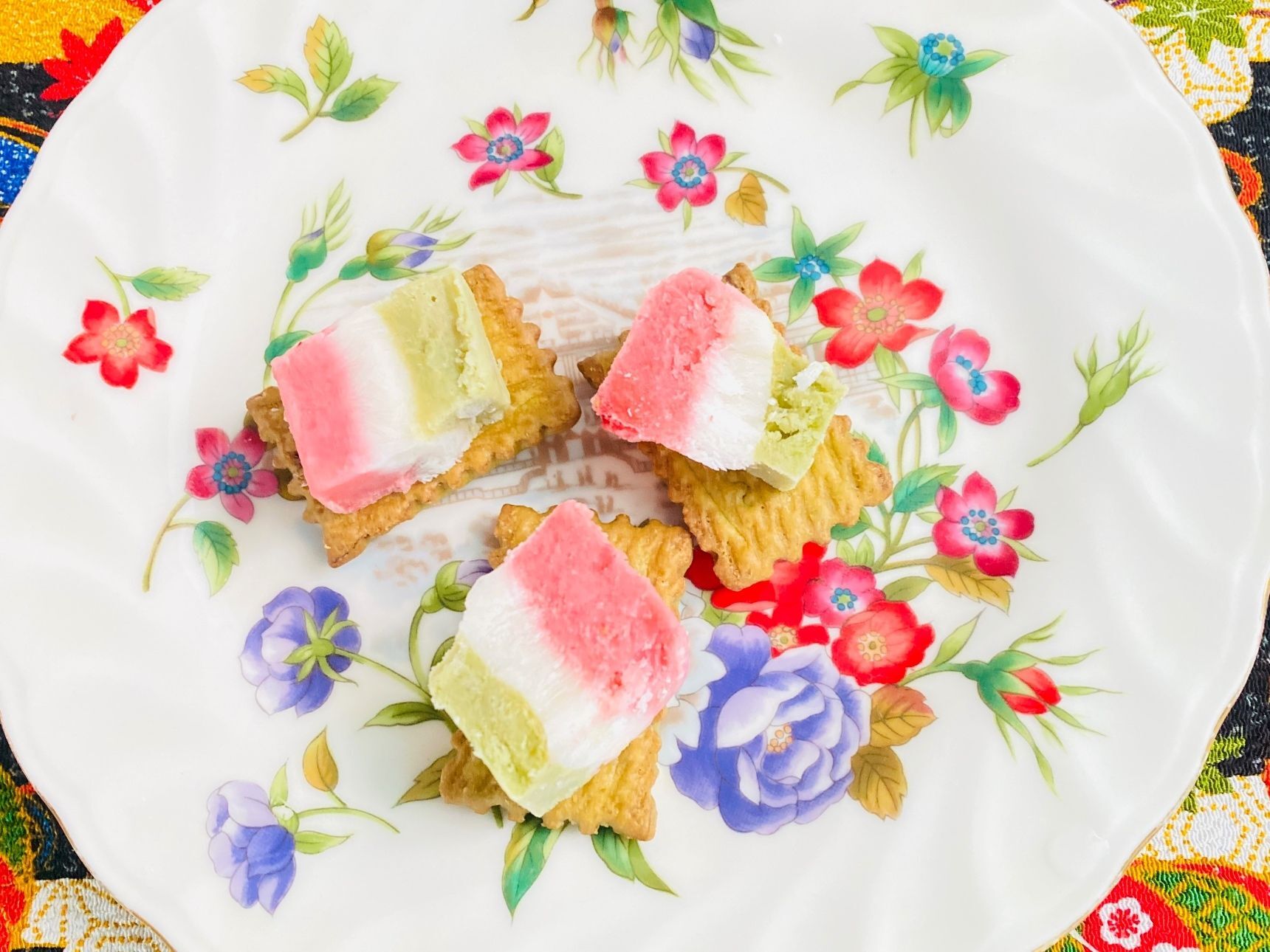 冷んやり菱餅風シャーベットをのせて、お召になっても美味しいですよ。 宜しかったら、下記をご参照下さい。