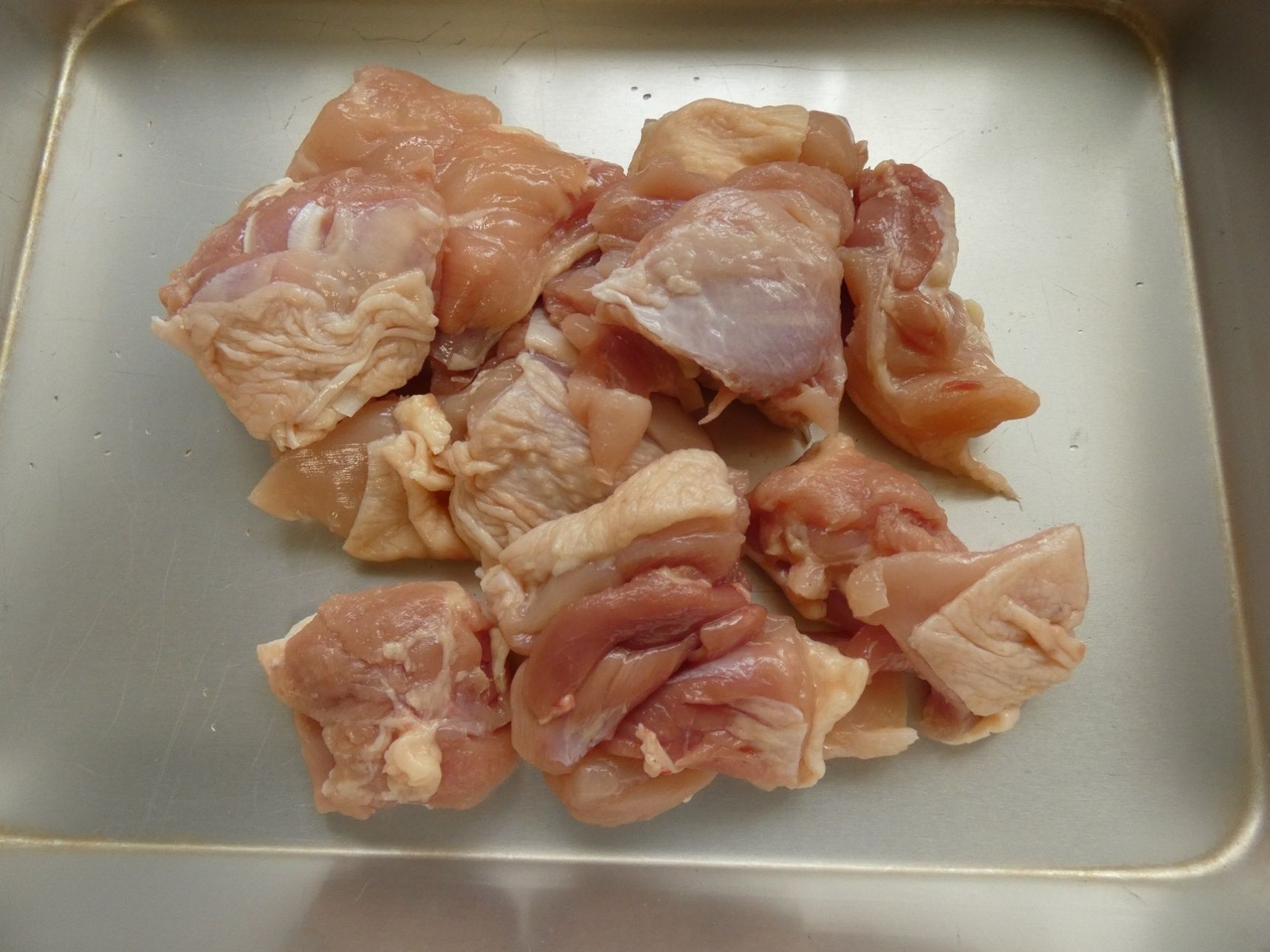 鶏もも肉は一口大に切ります。