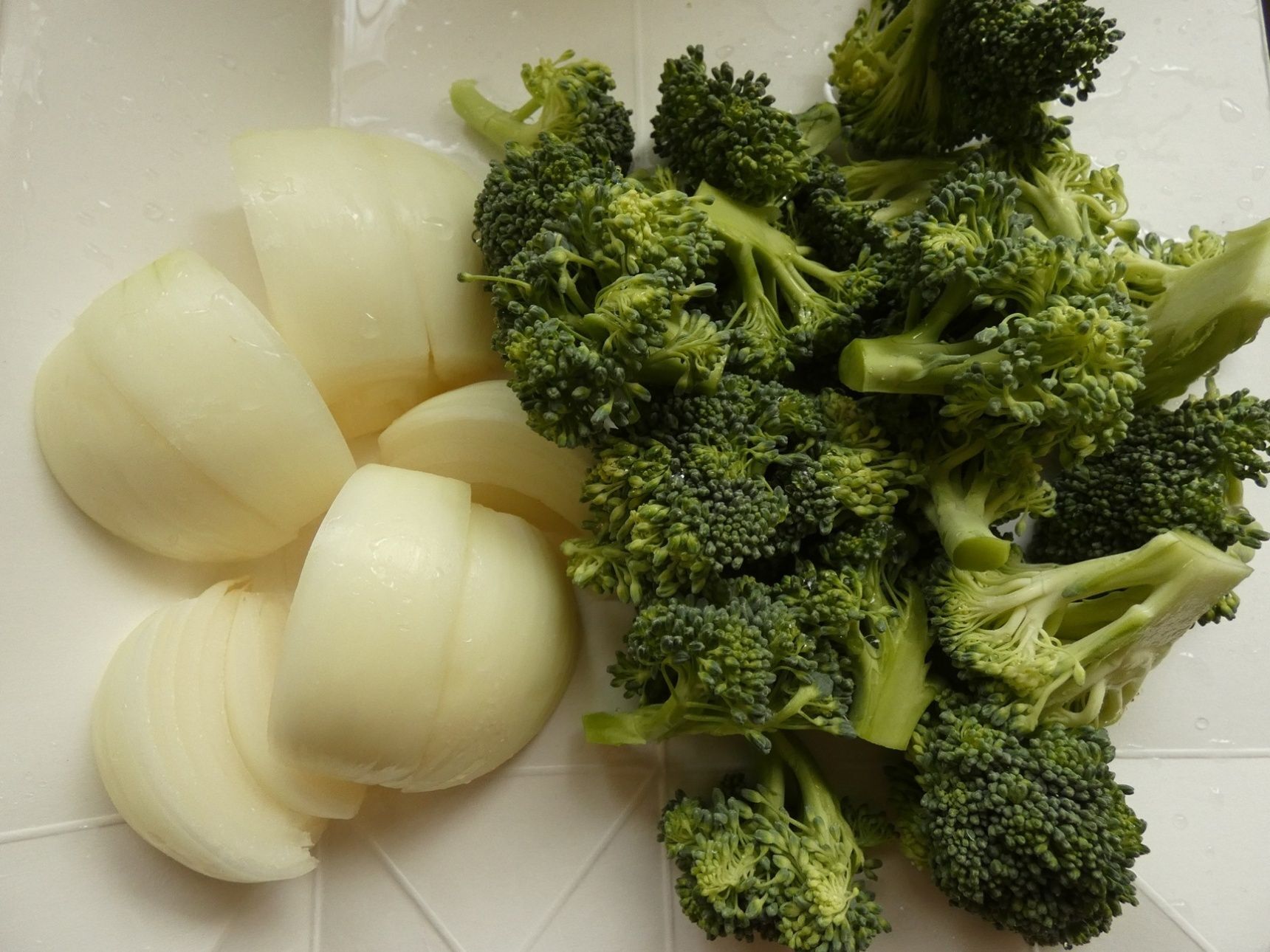 玉ねぎはくし形切りにし、ブロッコリーは小房に分けます。
