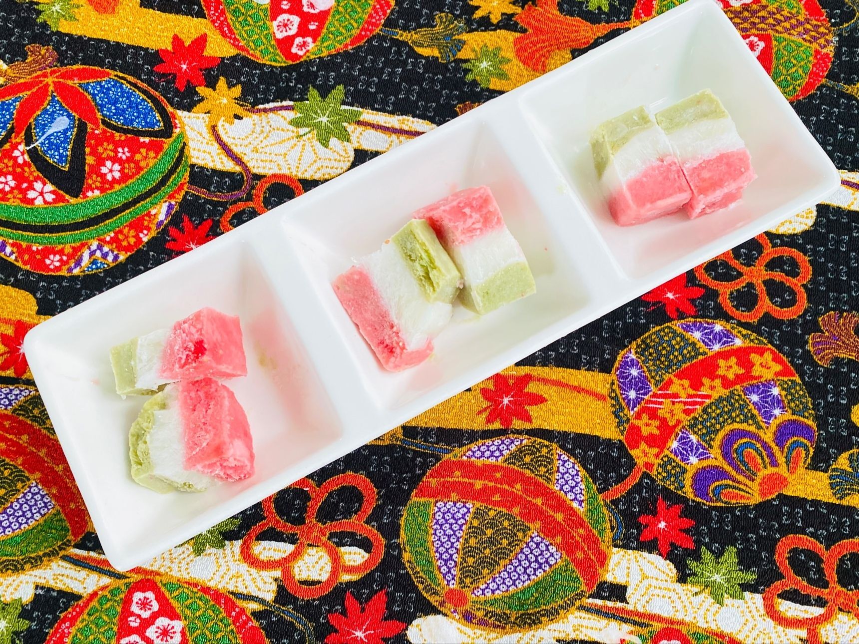 一般に、菱餅は、3月3日のひな祭り(桃の節句)にお供えされる緑・白・紅の3色の菱形餅です。