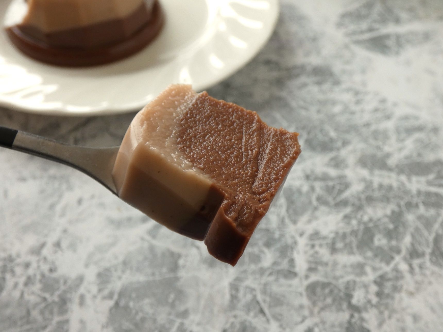 さくら味の部分はブルんとした食感で、ショコラ風味の強い下の段はもっちり食感。ご褒美にピッタリなスペシャルスイーツです。