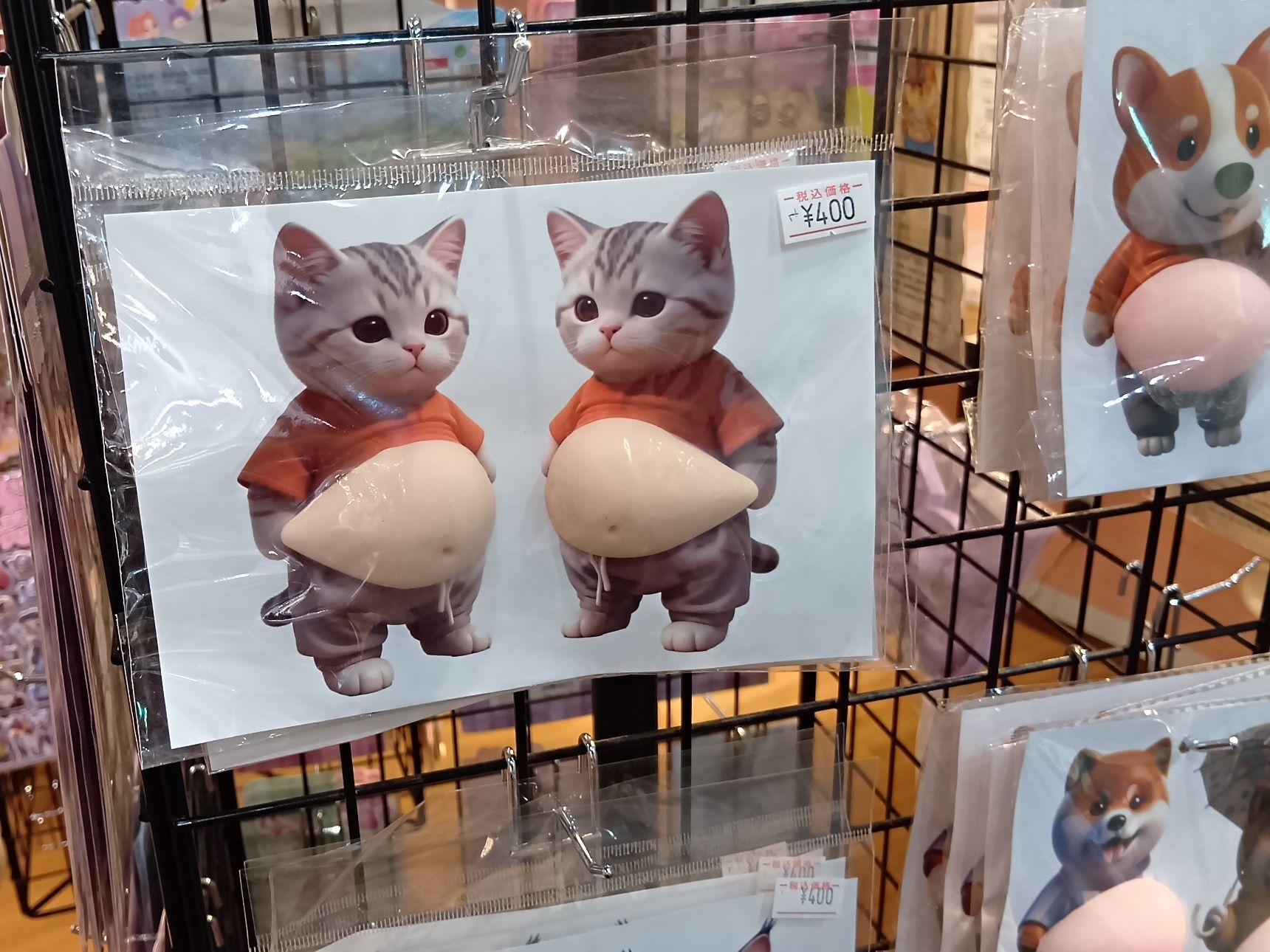 お店の方にお話を伺うと、ただ眺めて楽しむだけでなく、こちらの猫の太鼓腹シールは衝撃防止グッズとして活用されることもあるそうです。