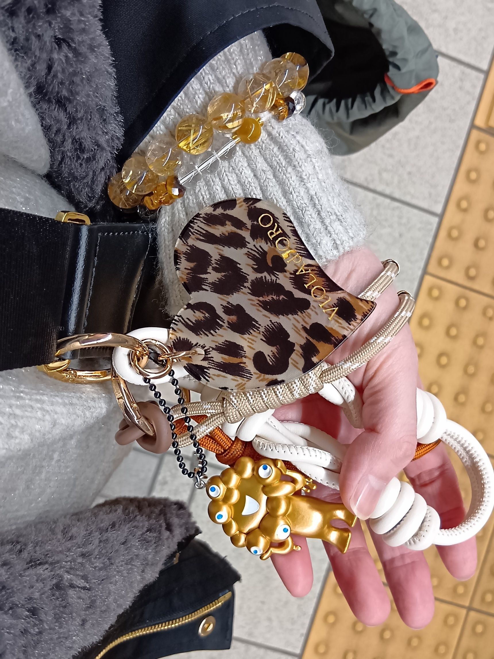 画像は、バッグにつけているチャーム、金色のミャクミャクつきで可愛いでしょ!その日の気分に合わせて付け替えて楽しんでいるもの。