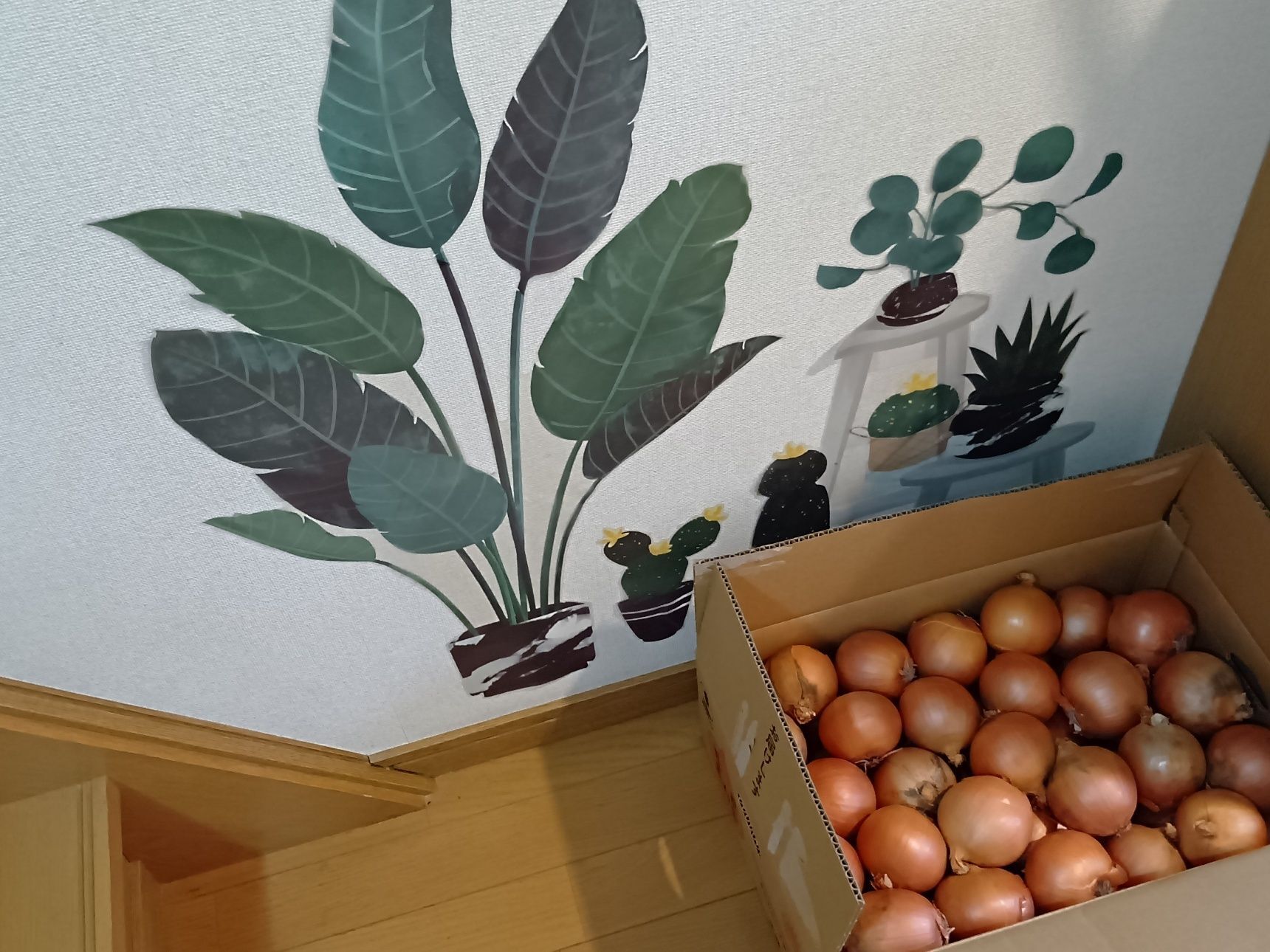 玉ねぎをくれたとき、玄関で姉がこの平面のグリーンを褒めてくれたんです!
