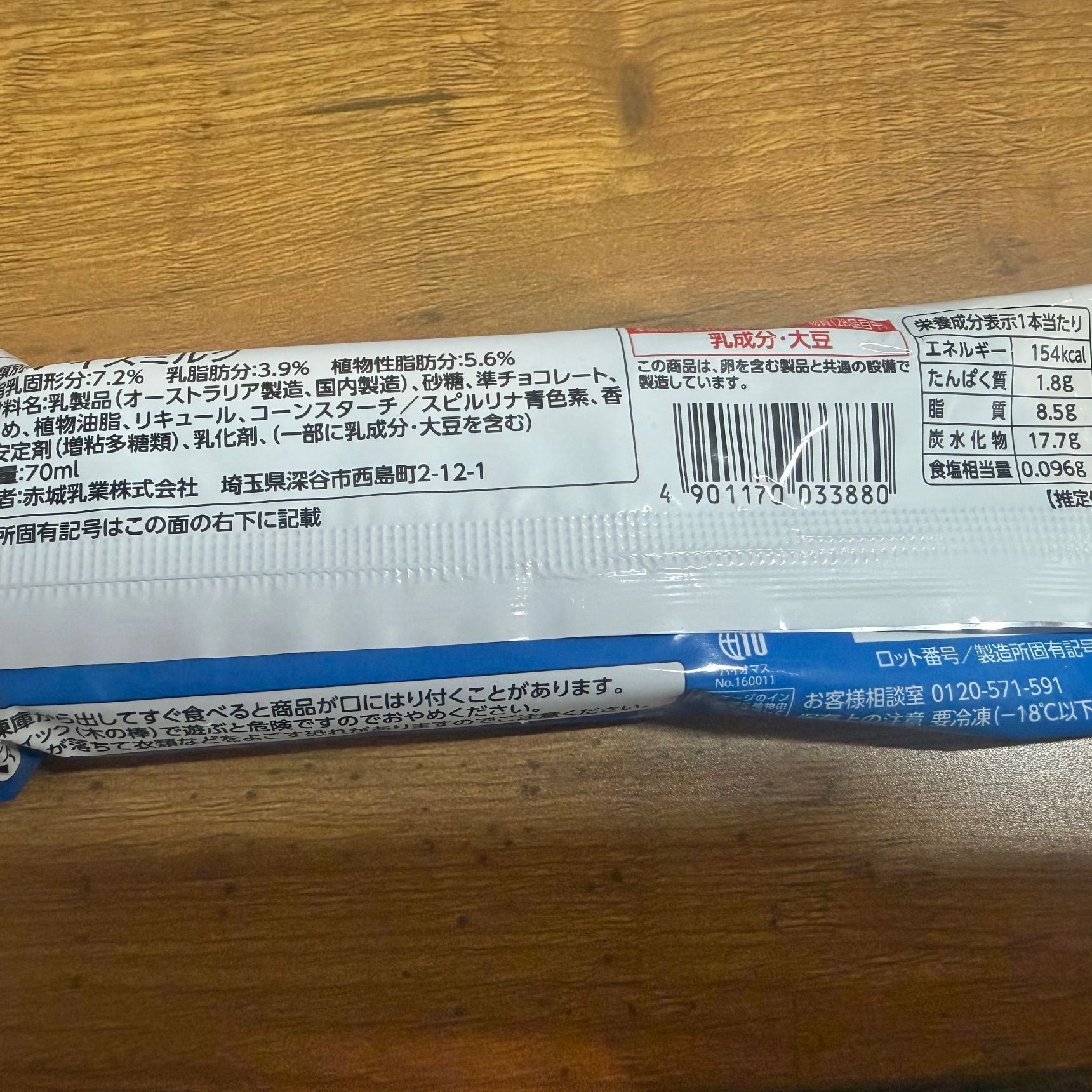 期待していたチョコミントも開けてみます!こちらはガリガリ君の赤城乳業さんが製造。ガリガリ君リッチのチョコミントが好きなので期待値があがります。