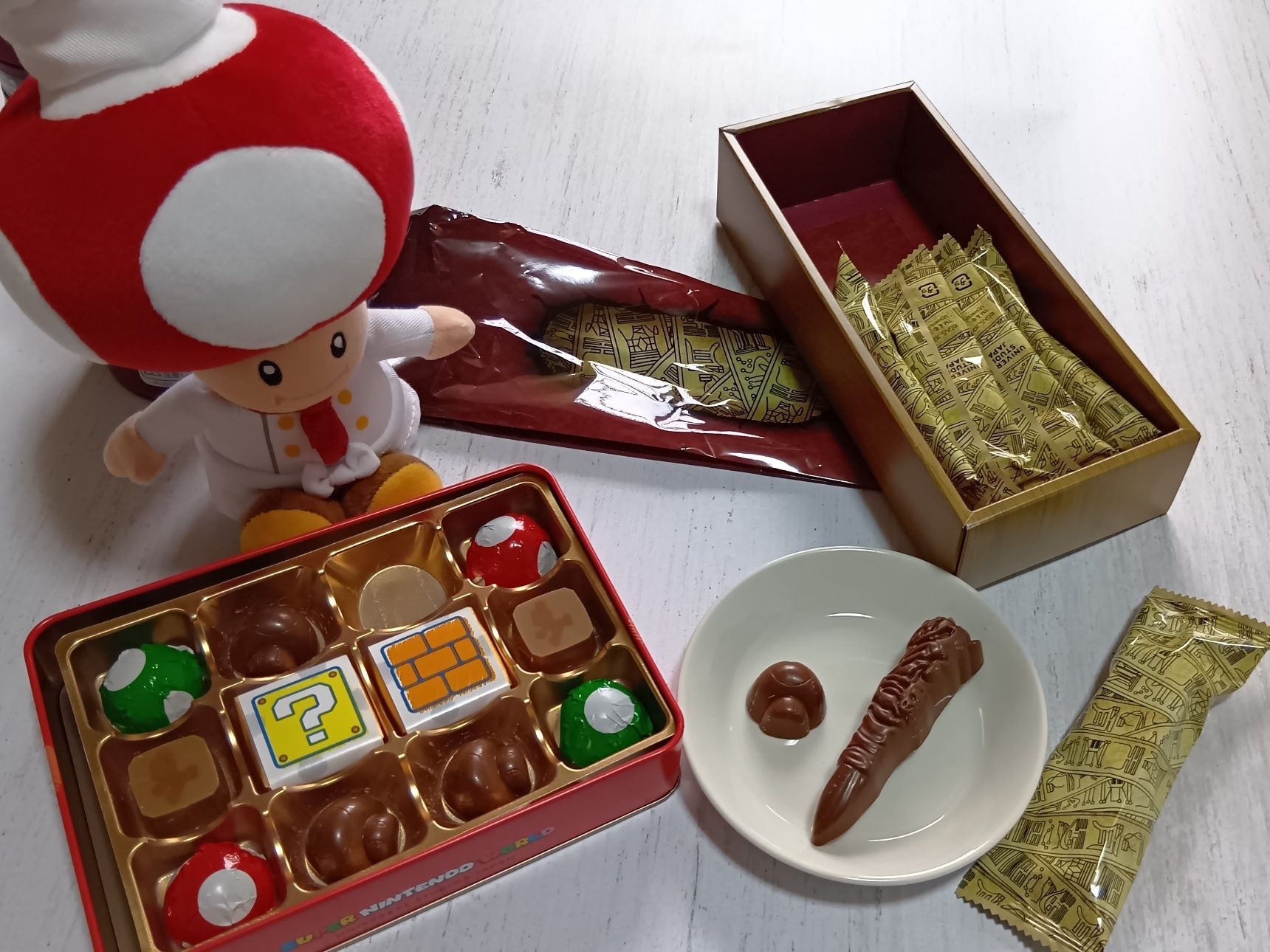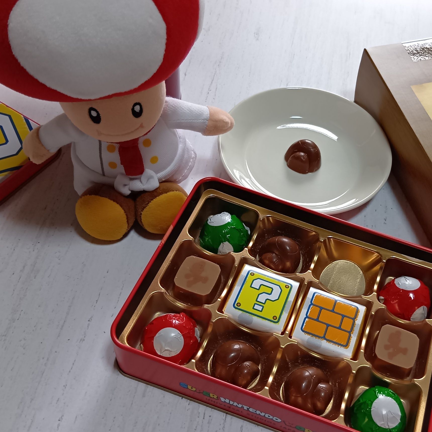 まずはユニバで人気のキノピオチョコから、ミルク味を選んでひと口。コクのある甘さでとても美味しく、満足感の高いチョコレートでした。