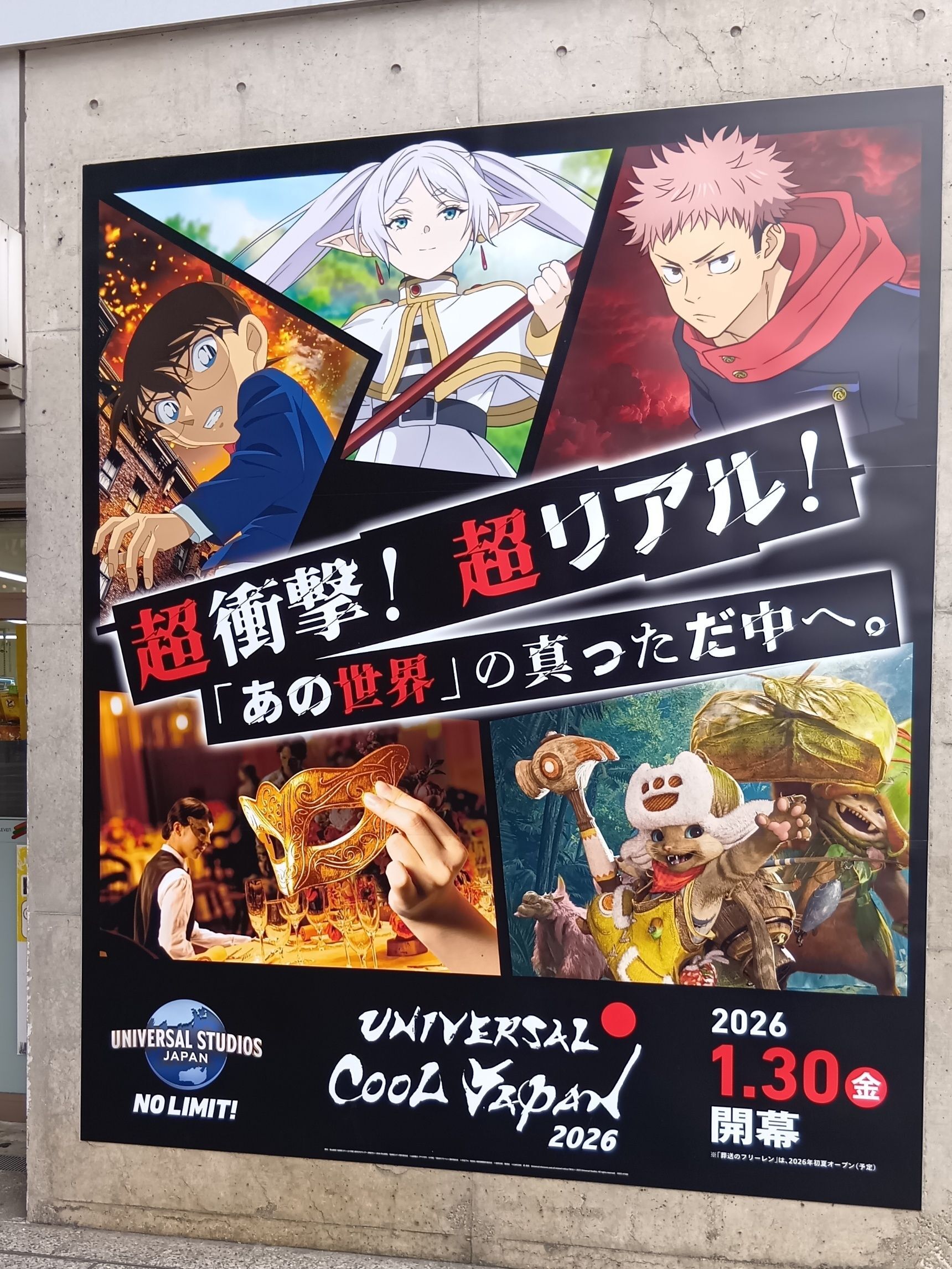 ユニバーサル・クールジャパン2026の目玉アトラクションとして登場した完全新作ストーリーで、呪術廻戦の世界を“全身で体感できる”没入型シアターです。→2026年1月30日から8月18日までの期間限定開催ということもあり、今しか体験できない特別コラボ。アニメ第3期放送のタイミングとも重なり、パーク全体が呪術廻戦一色になっていて、入園前から期待値は最高潮でした。