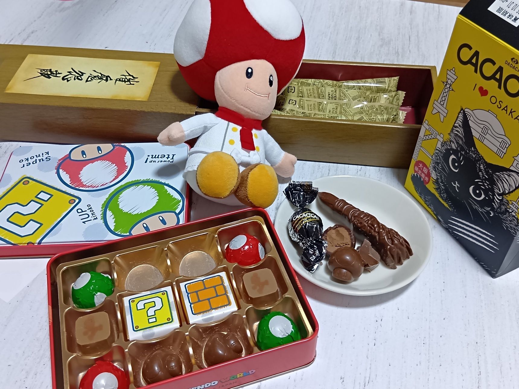 キノピオチョコもカカオキャットも、さまざまな種類のチョコが入っているので、ひとつずつ味わいながら食べ比べを楽しめるのが魅力。