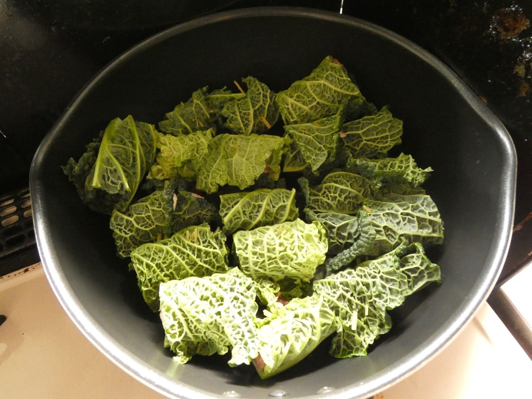 キャベツの白い部分をそぎ落すと、巻きやすいです。サボイキャベツを使うと、葉が柔らかくて巻きやすいです。普通のキャベツで代用する場合は、電子レンジ加熱してキャベツを柔らかくしてから豚肉を巻いてください。