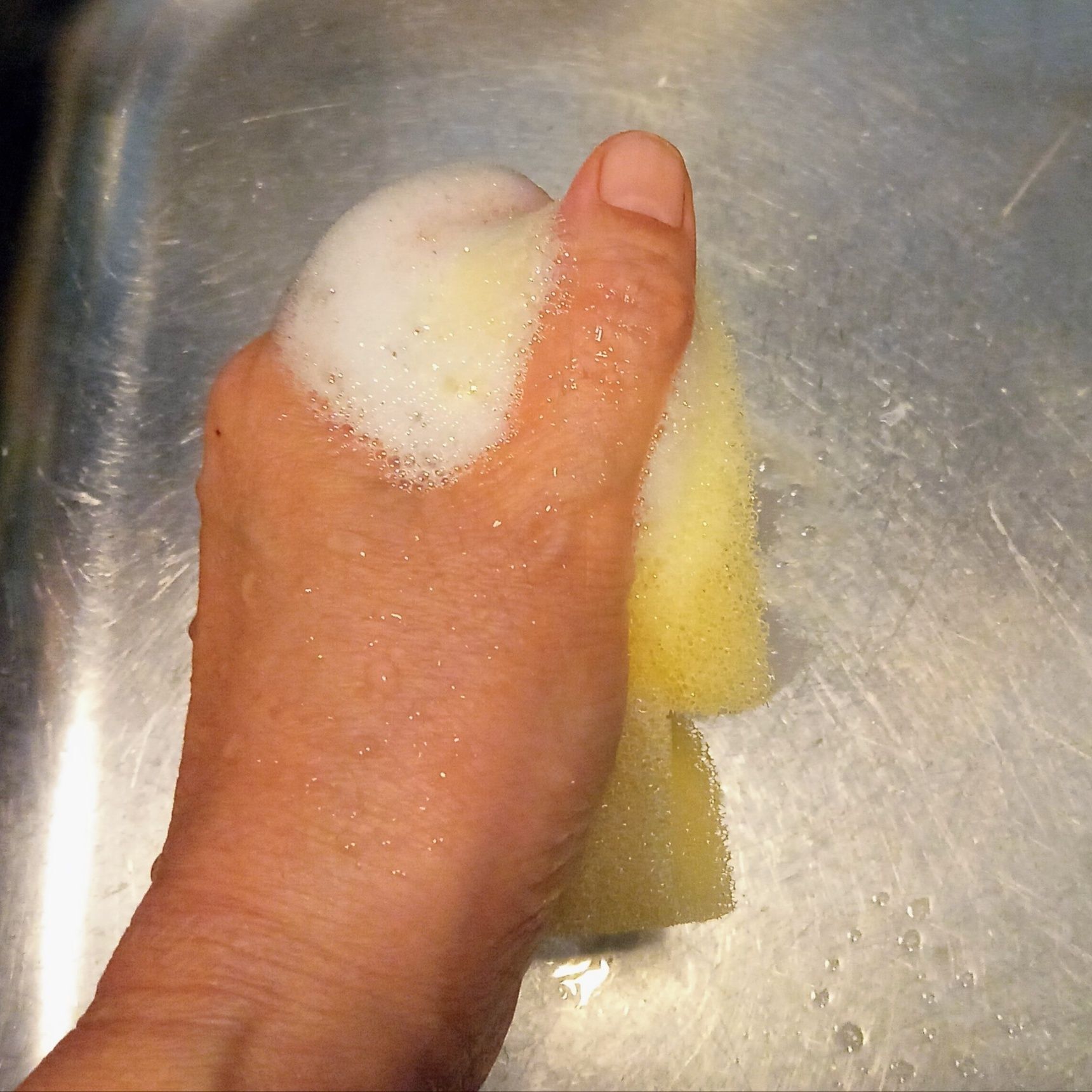 手に馴染む感じや、サイズ的にもコスパ的にも、最高〜と思って買い続けていたスポンジ。2個入りで110円だから