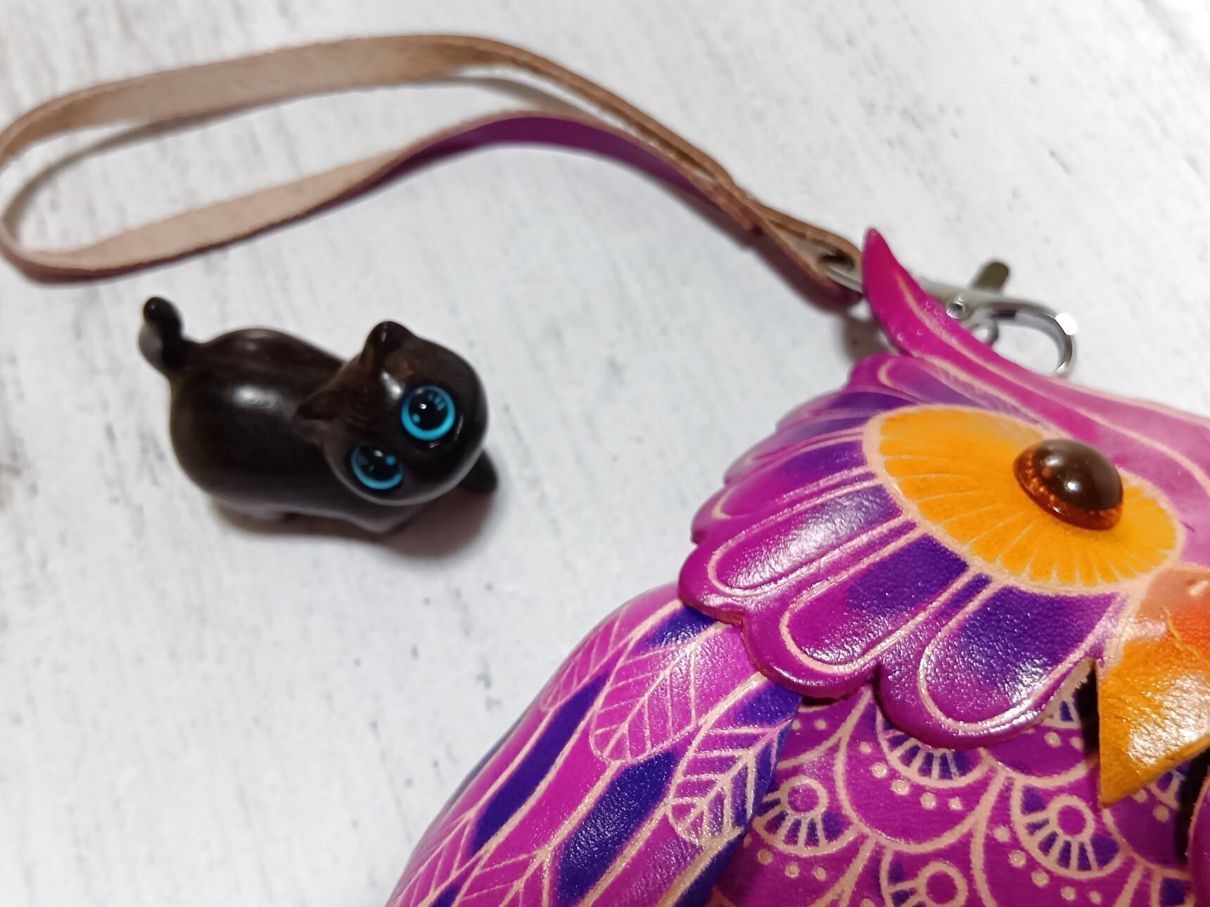 黒猫のオブジェと一緒に購入したのが、こちらのフクロウの入れ物。なんと 「ラクダ」の皮 で作られているそうなんです!