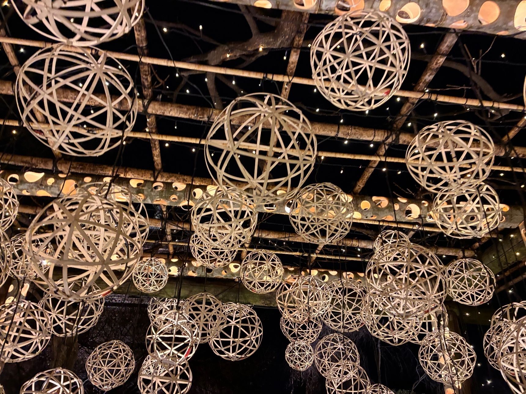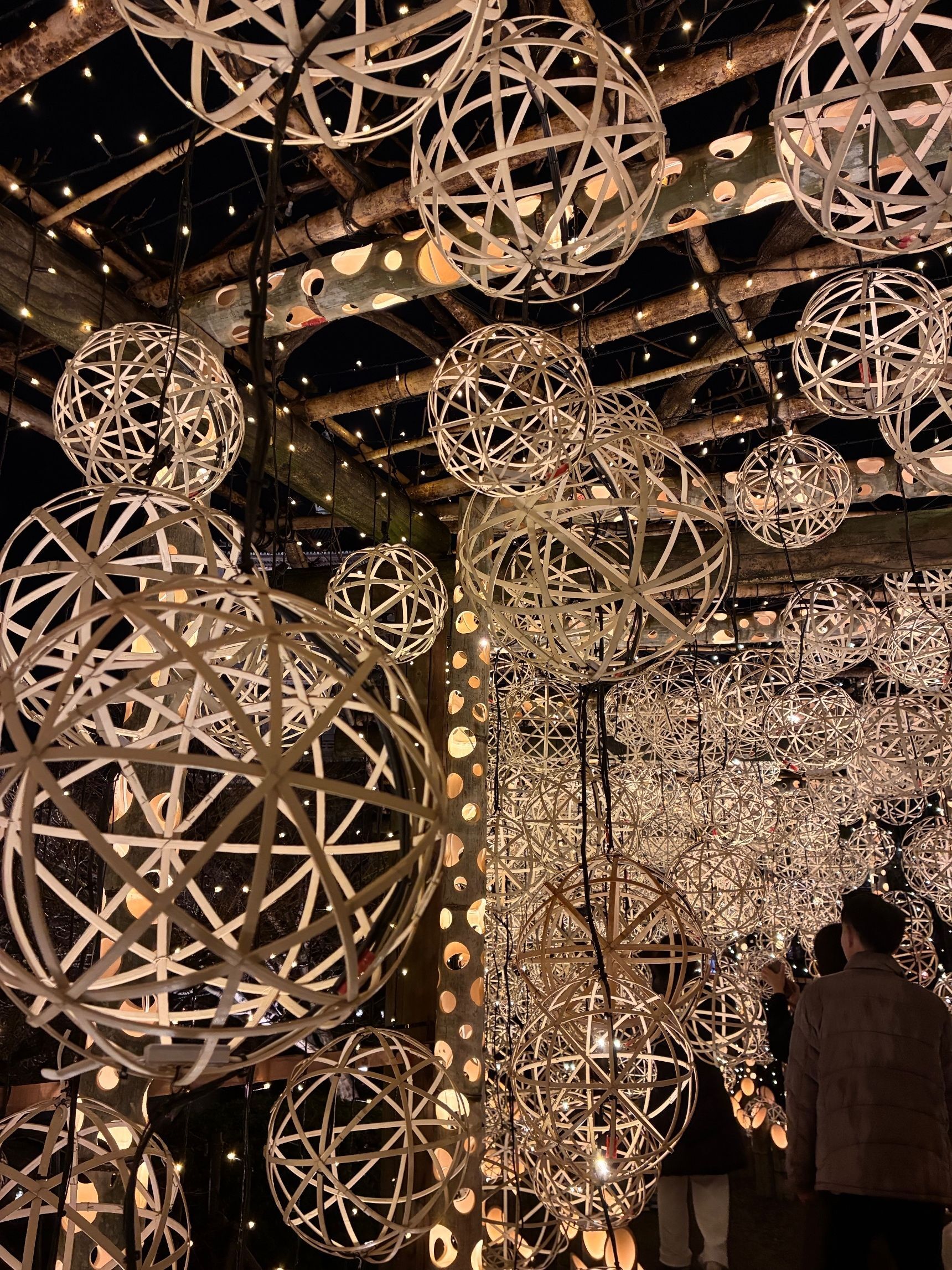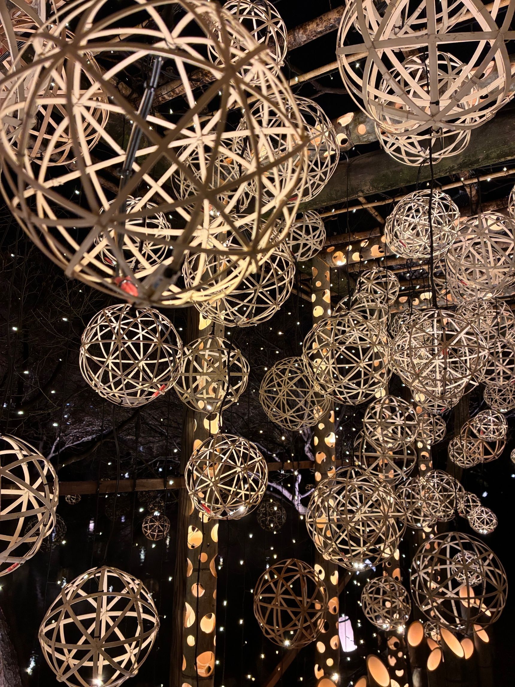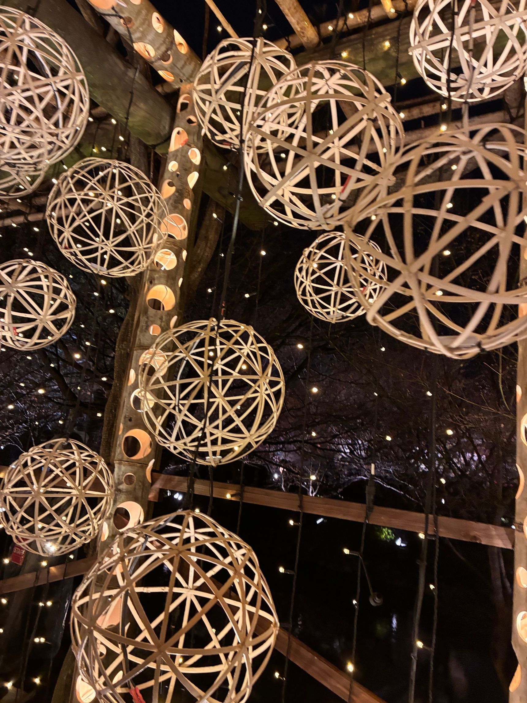 でも、池に浮かぶ光の竹鞠がキラキラと輝き、木々を照らす灯りも幻想的で、竹灯りや灯篭が点在していたので、待つ時間も嫌ではありませんでした。