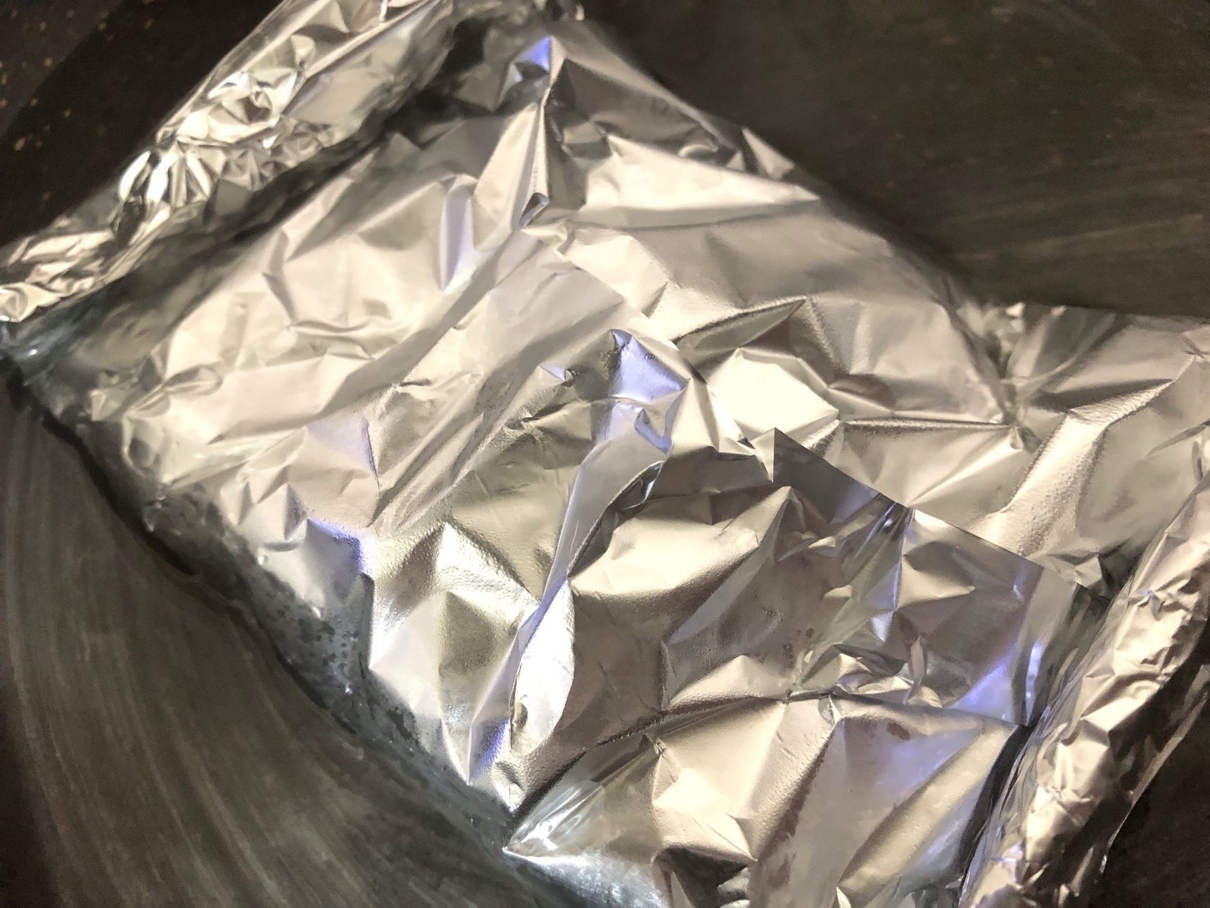 タルタルソースを載せてアルミホイルを閉じます。