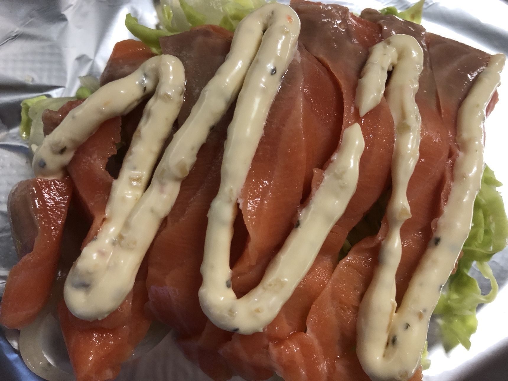 お刺身として食べようと思っていたので、サーモンは既にカット済みです。
