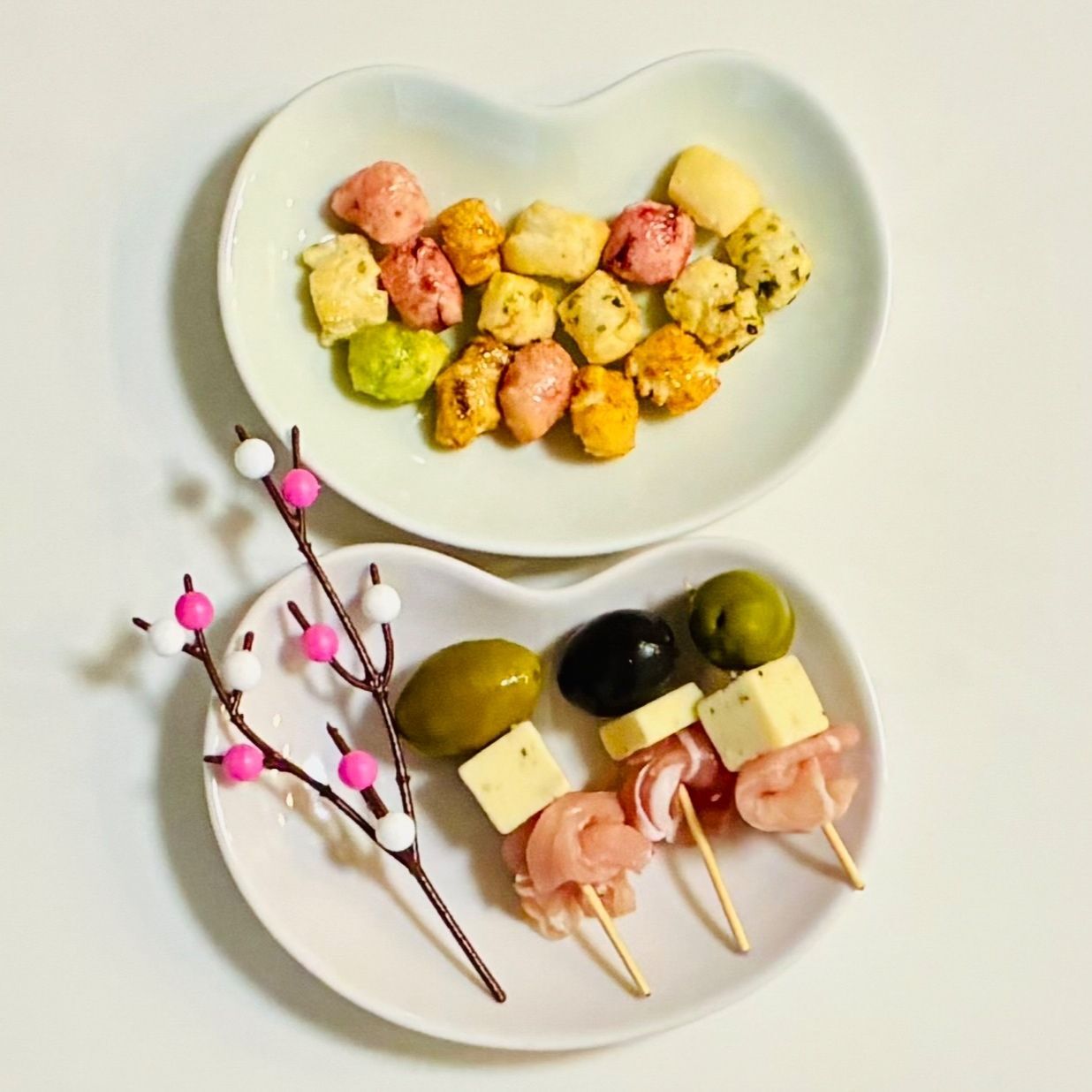 普段使いのおつまみたちですが、今日は可愛くセッティングして気分を上げてもらいましょう。