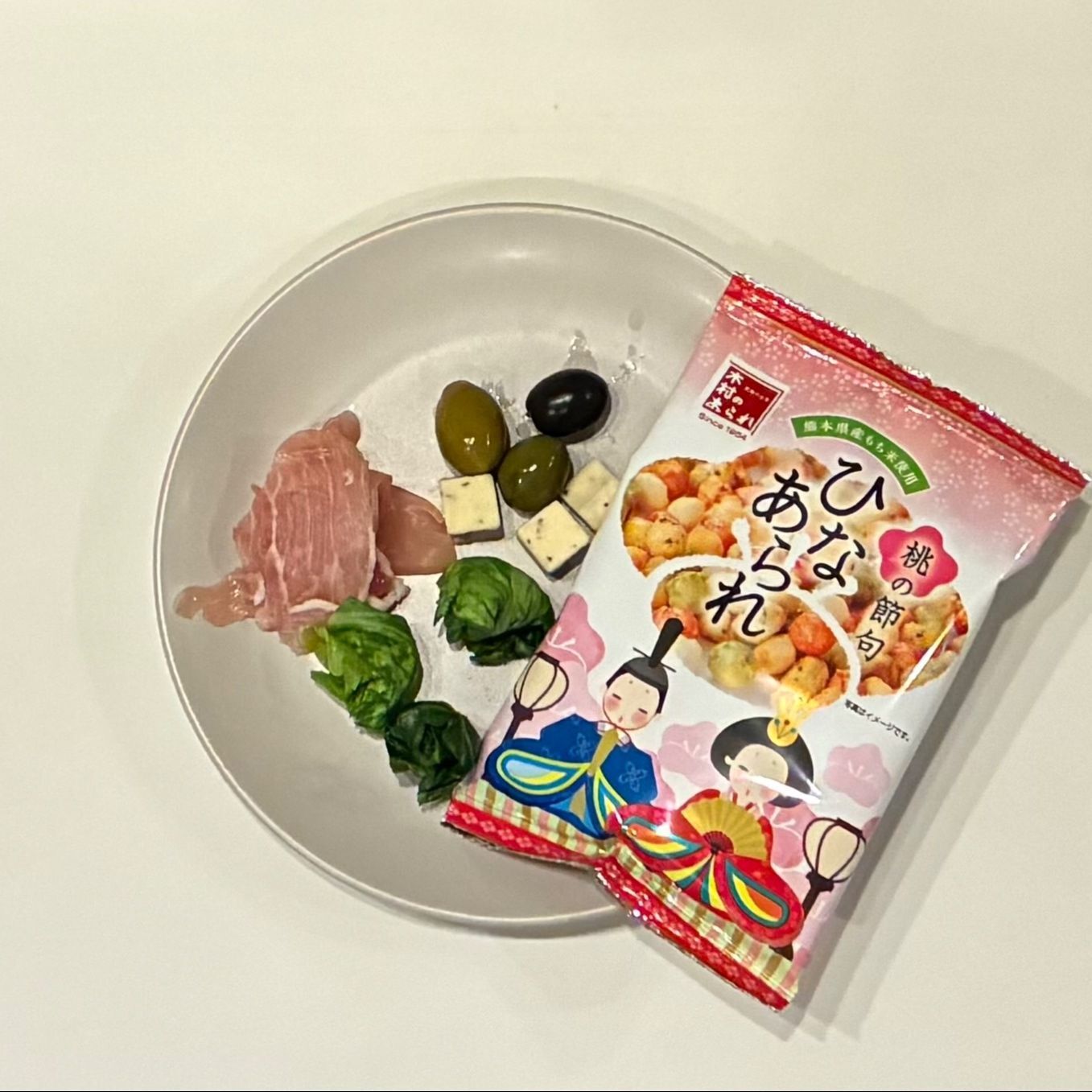 オリーブとチーズと生ハム。