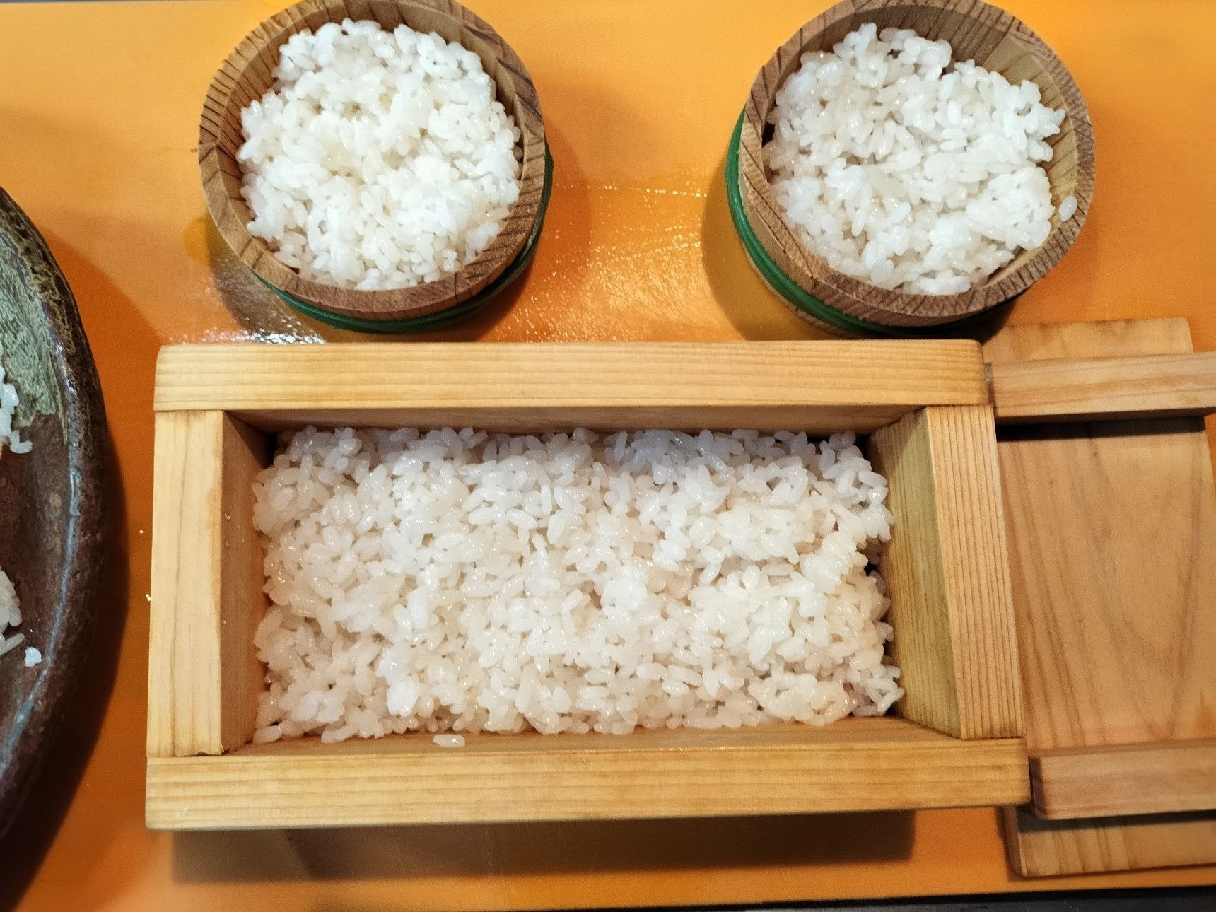 5. ミニ樽と木製押し寿司器に詰める