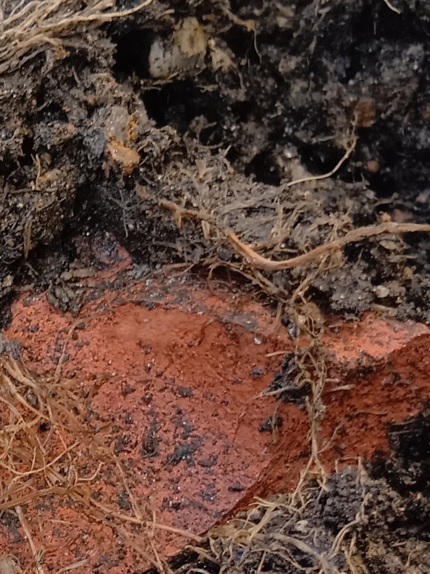 この大きな鉢ね、専用のネットなどではなく、身近にあるもので代用していた→割れてしまった鉢の破片を使って、穴をふさいでいたりもしていたよう。