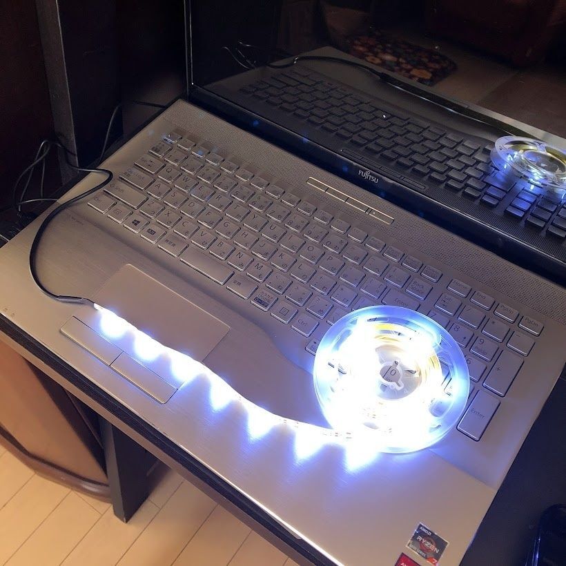 PCのUSBから電源をとって仮に点灯させてみましたが、かなり明るいです!