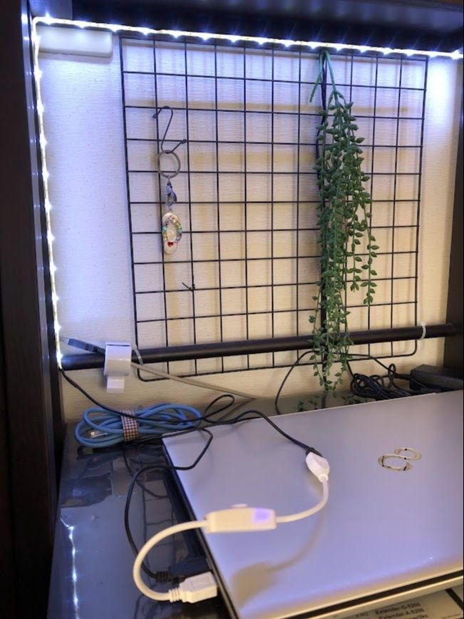 パソコン作業が楽しくなる間接照明としてデスク周りの装飾が完成しました。